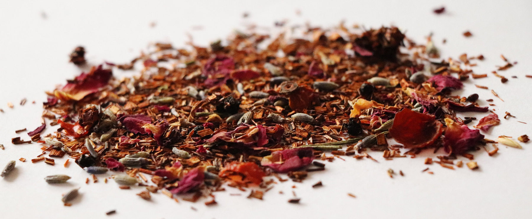 Lavender Berry Rooibos Tea - Fruity with sweet floral notes create synergy with the burgundy rooibos. The lavender provides a sweet floral finish.