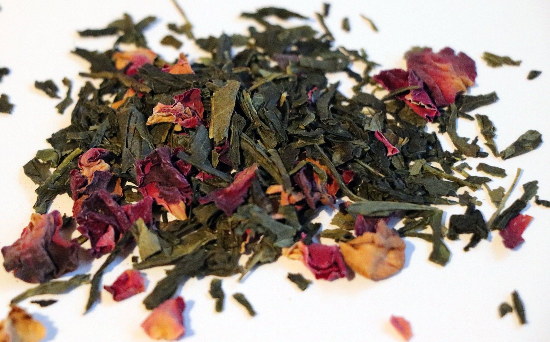 Cherry Rose Sencha Green Tea - Delicious cherry notes with calming rose flavor bended with sencha green tea. High antioxidants with low caffeine.