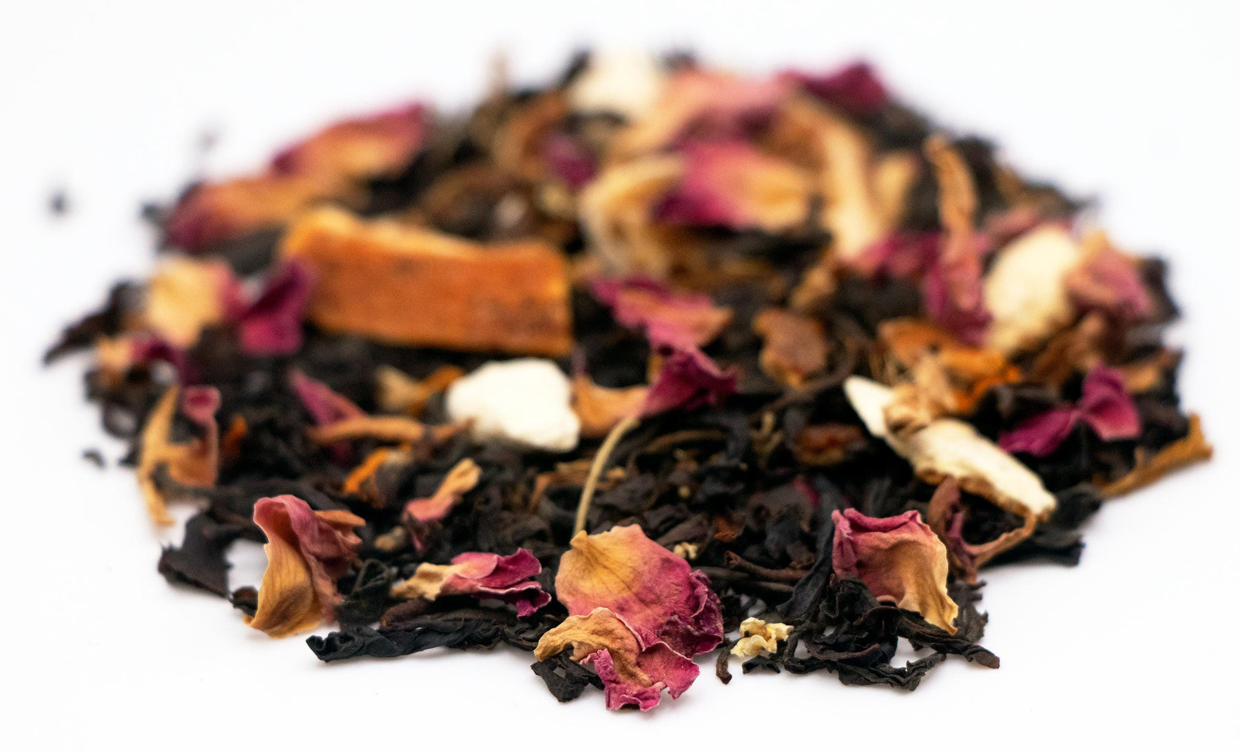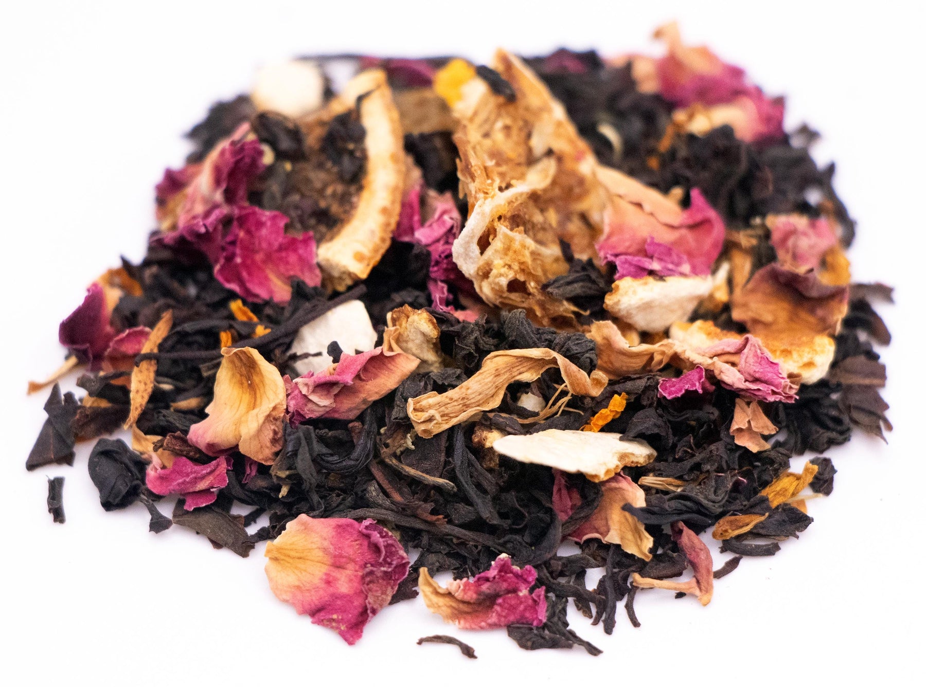 Ingredients: Black Tea, Orange Pieces, Rose Petals, Marigold Petals, Elder Flowers, Orange Blossoms, Natural Orange and Vanilla Flavor