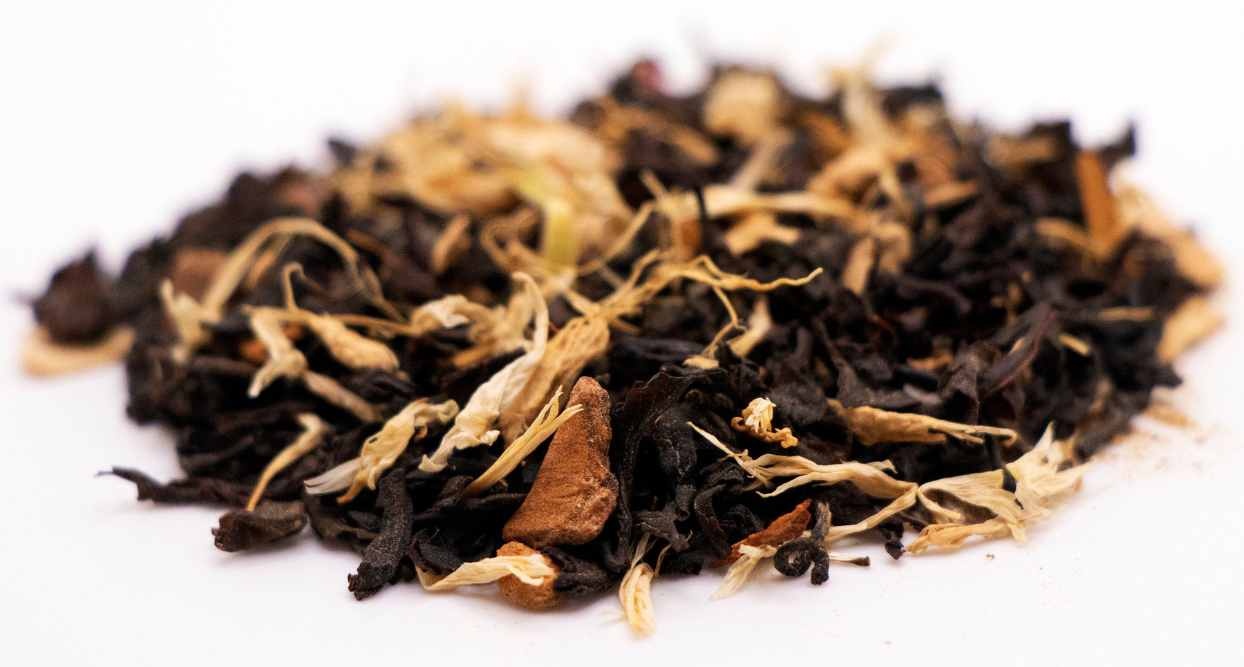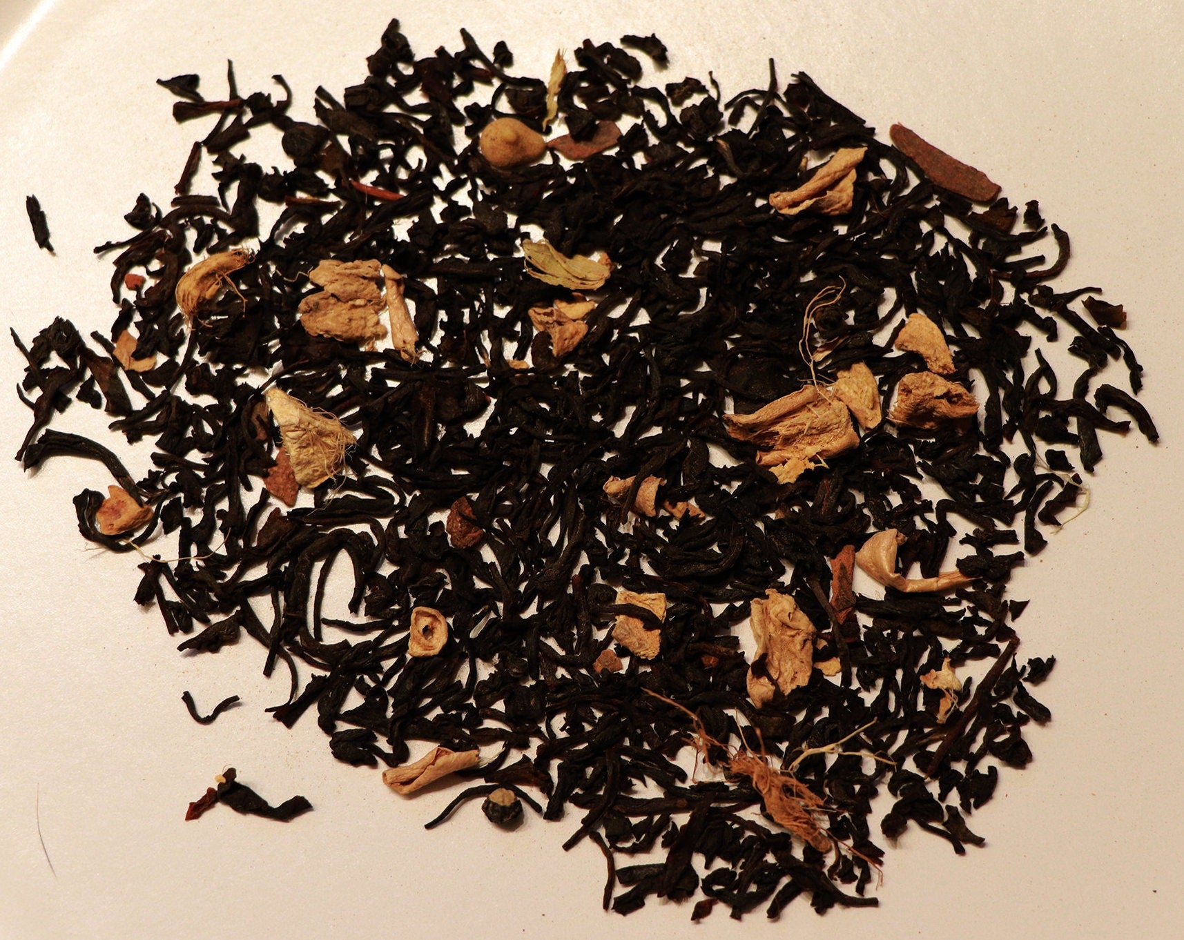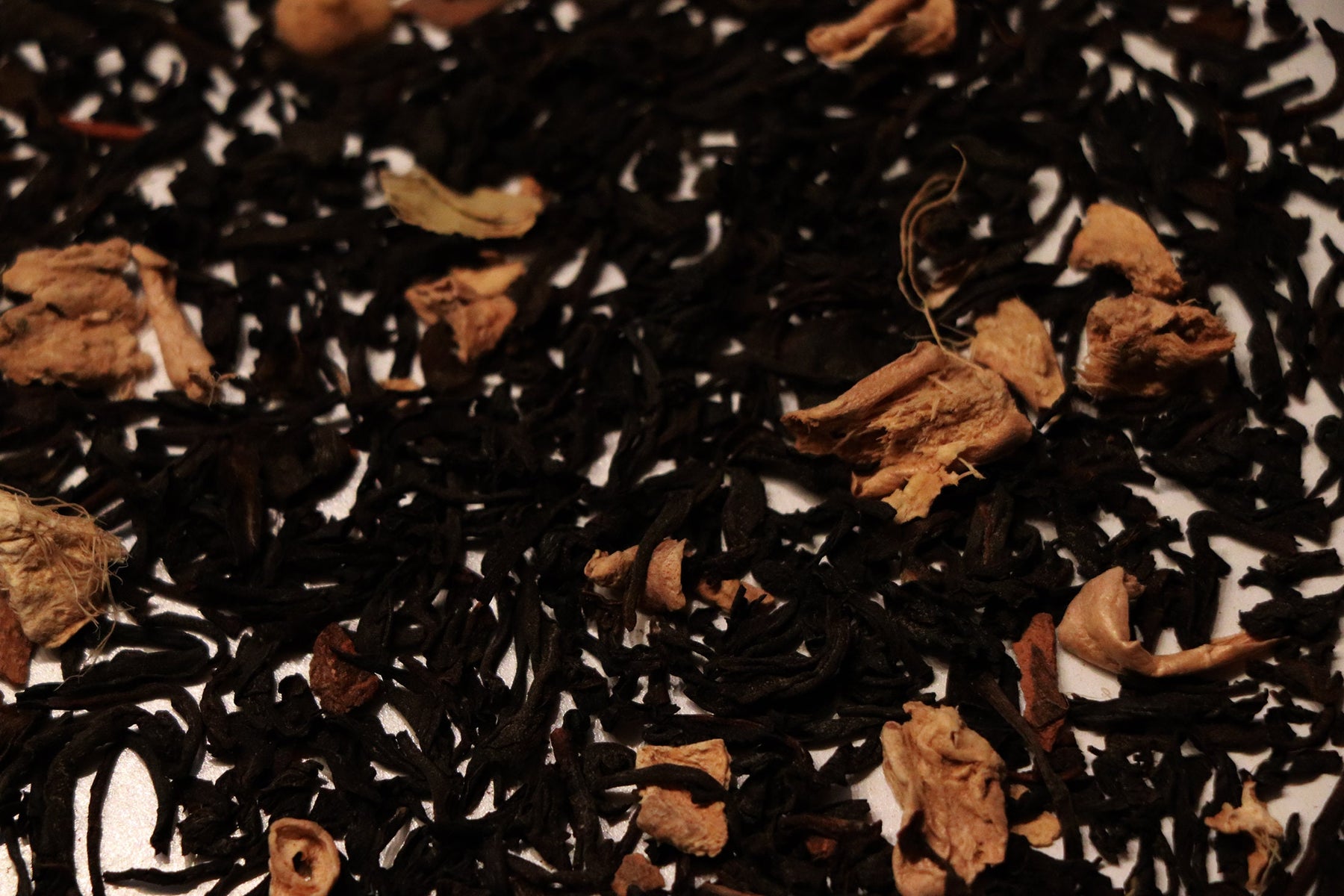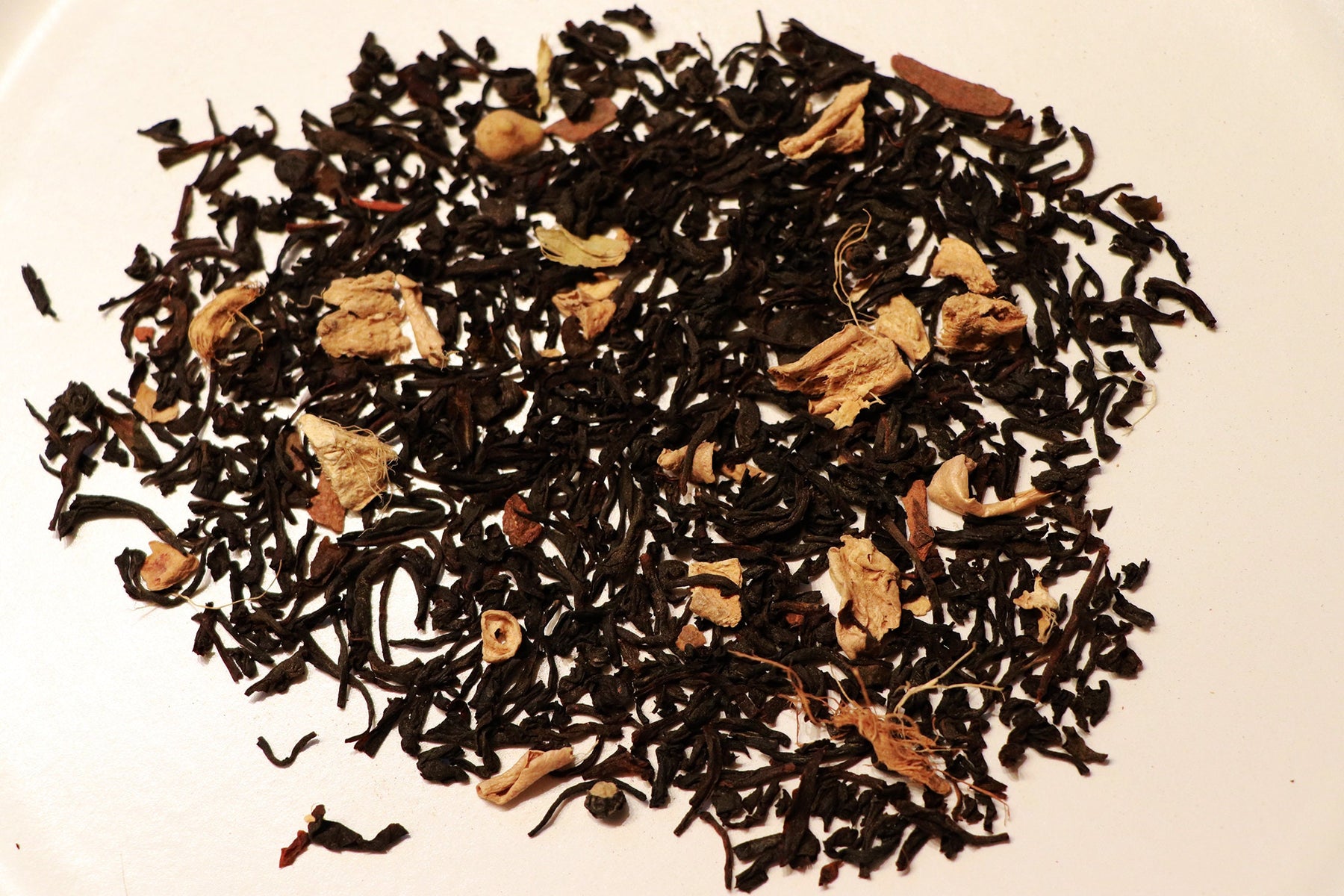 Ingredients: Black Tea, Ginger Pieces, Cocoa Beans, Cinnamon Pieces, Cardamom, Black Pepper, White Pepper, Clove, Nutmeg, White Cornflower, Natural Chocolate Flavor