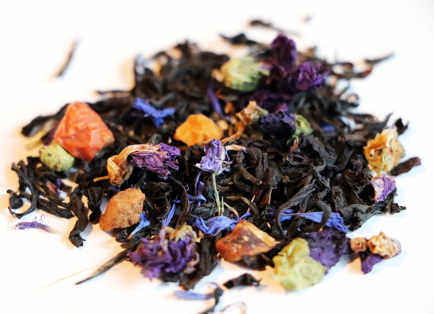 Ingredients: Black Tea, Apple Pieces, Cornflower Petals, Linden Petals, Mallow Petals, and Natural Flavors