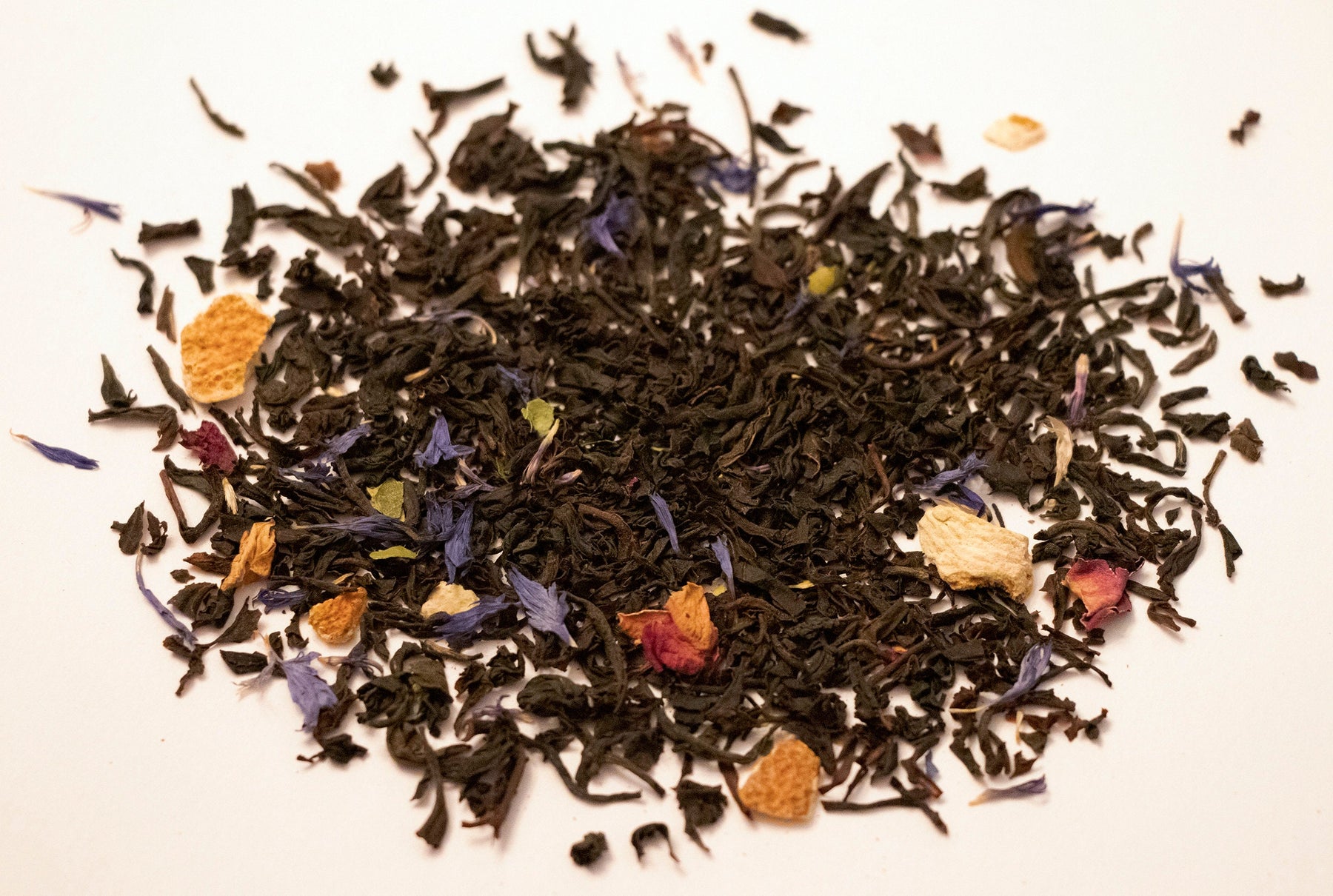 INGREDIENTS: Black Tea, Orange Pieces, Cornflower Petals, Rose Petals, Lime Leaves, Natural Flavors (organic compliant)
