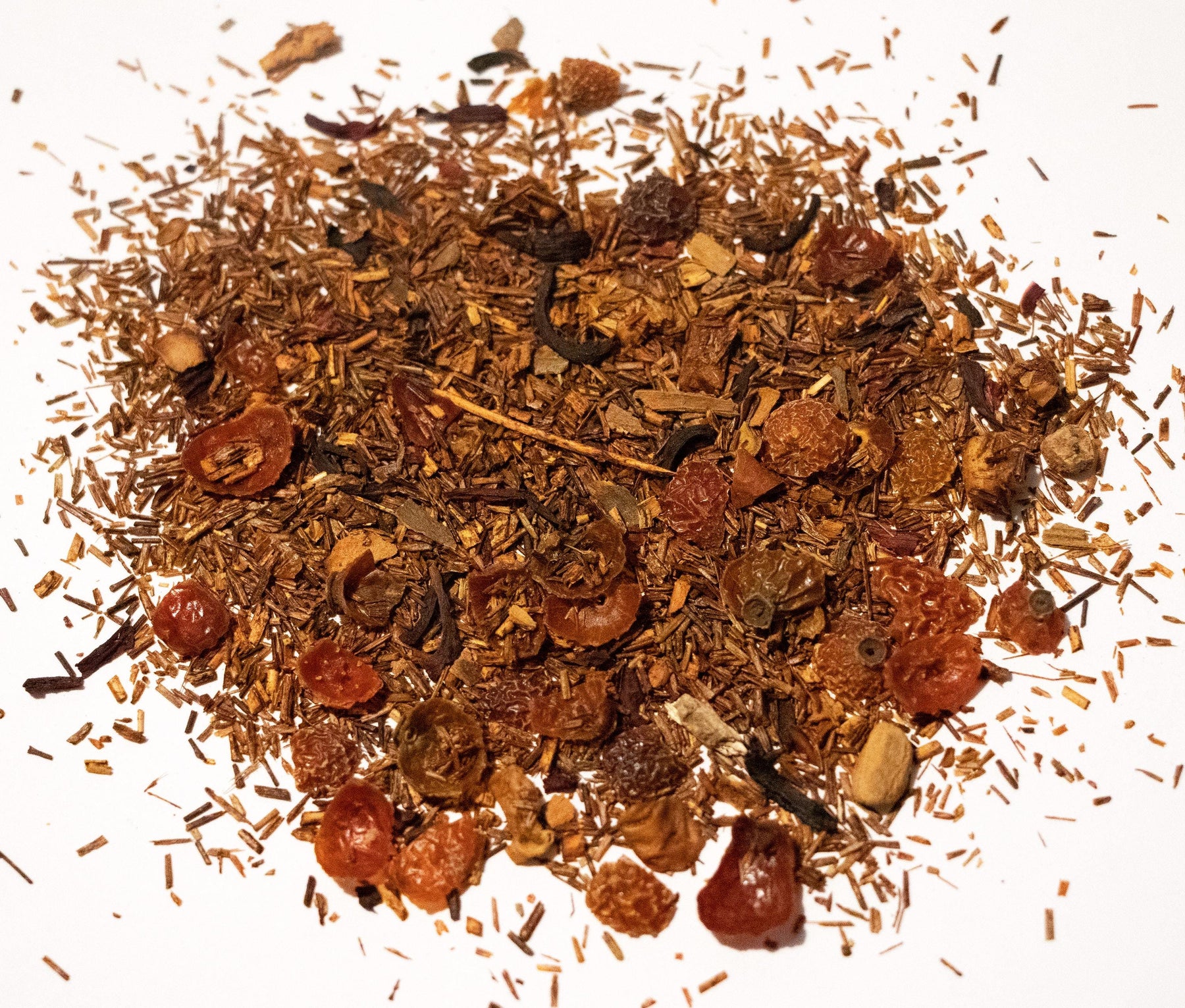 Ingredients: Rooibos Tea, Cinnamon Pieces, Ginger Pieces, Cardamom Pieces, Black Pepper, White Pepper, Clove, Nutmeg, Star Anise