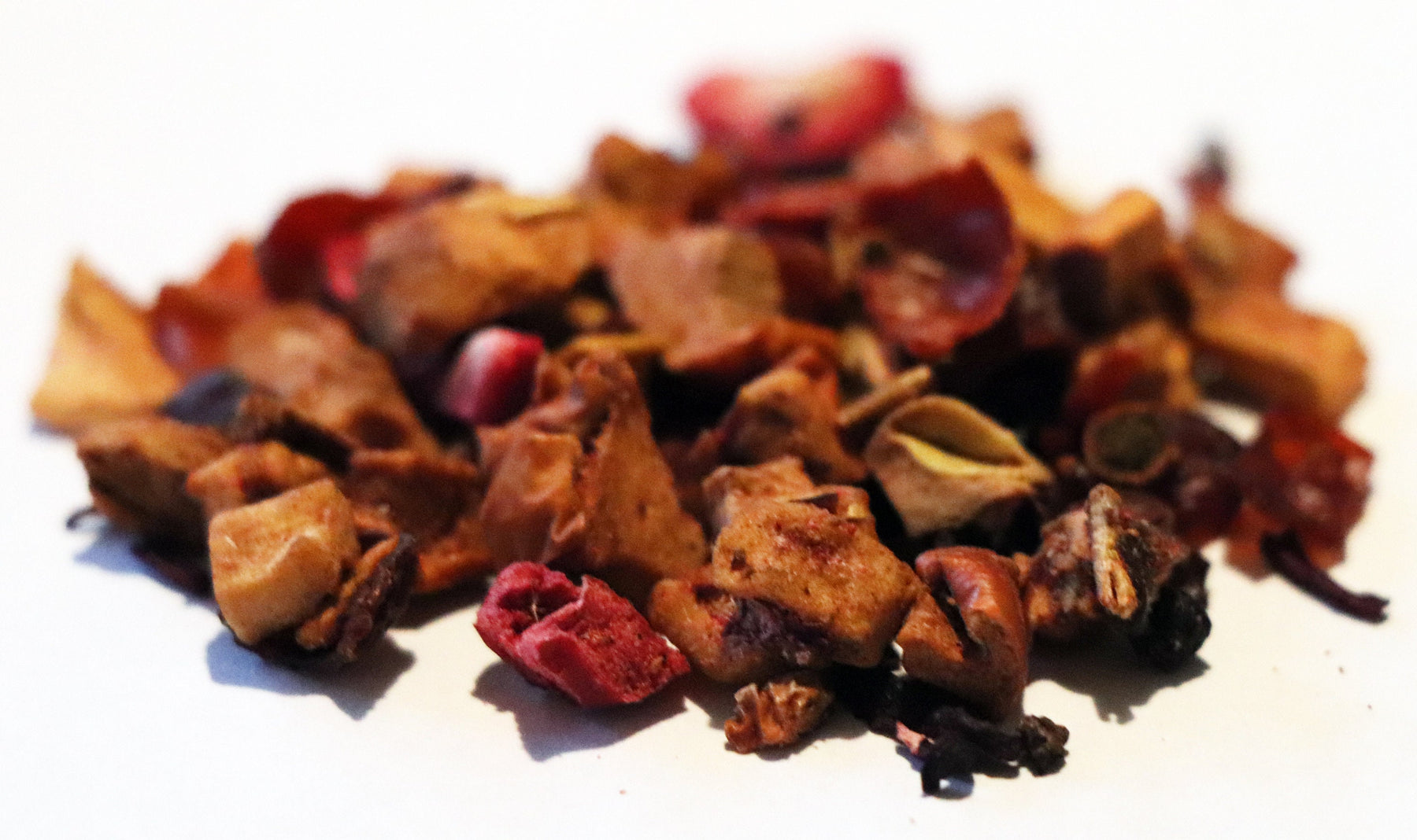 Apple Cranberry Herbal Tea - Full flavored and pungent with a rich fruity character. Add a cinnamon stick or a few cloves for an exotic mulled spice tea.