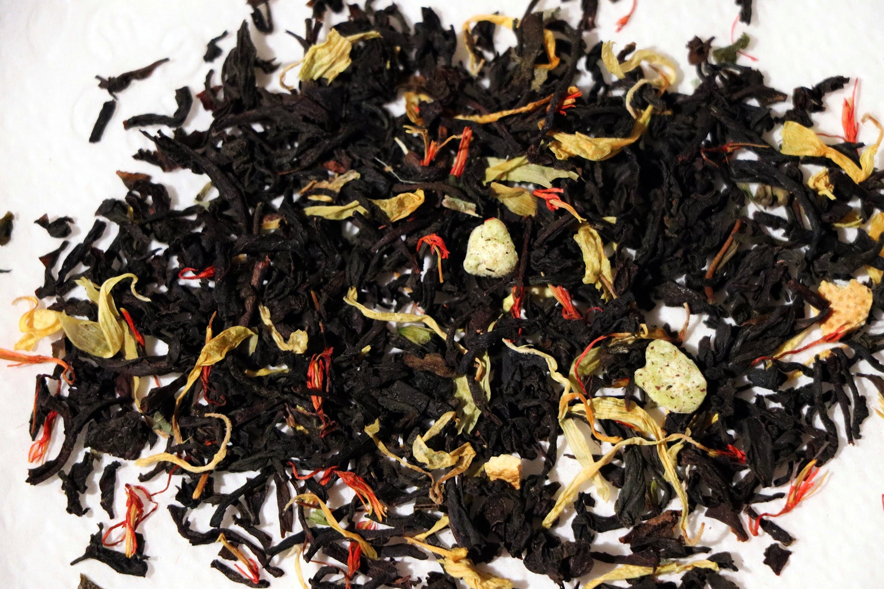 Ingredients: Black Tea, Orange Pieces, Cocoa Pieces, Lemon Balm Leaves, Safflower Petals, Calendula Petals, Sunflower petals, Natural Flavors (Organic Compliant)