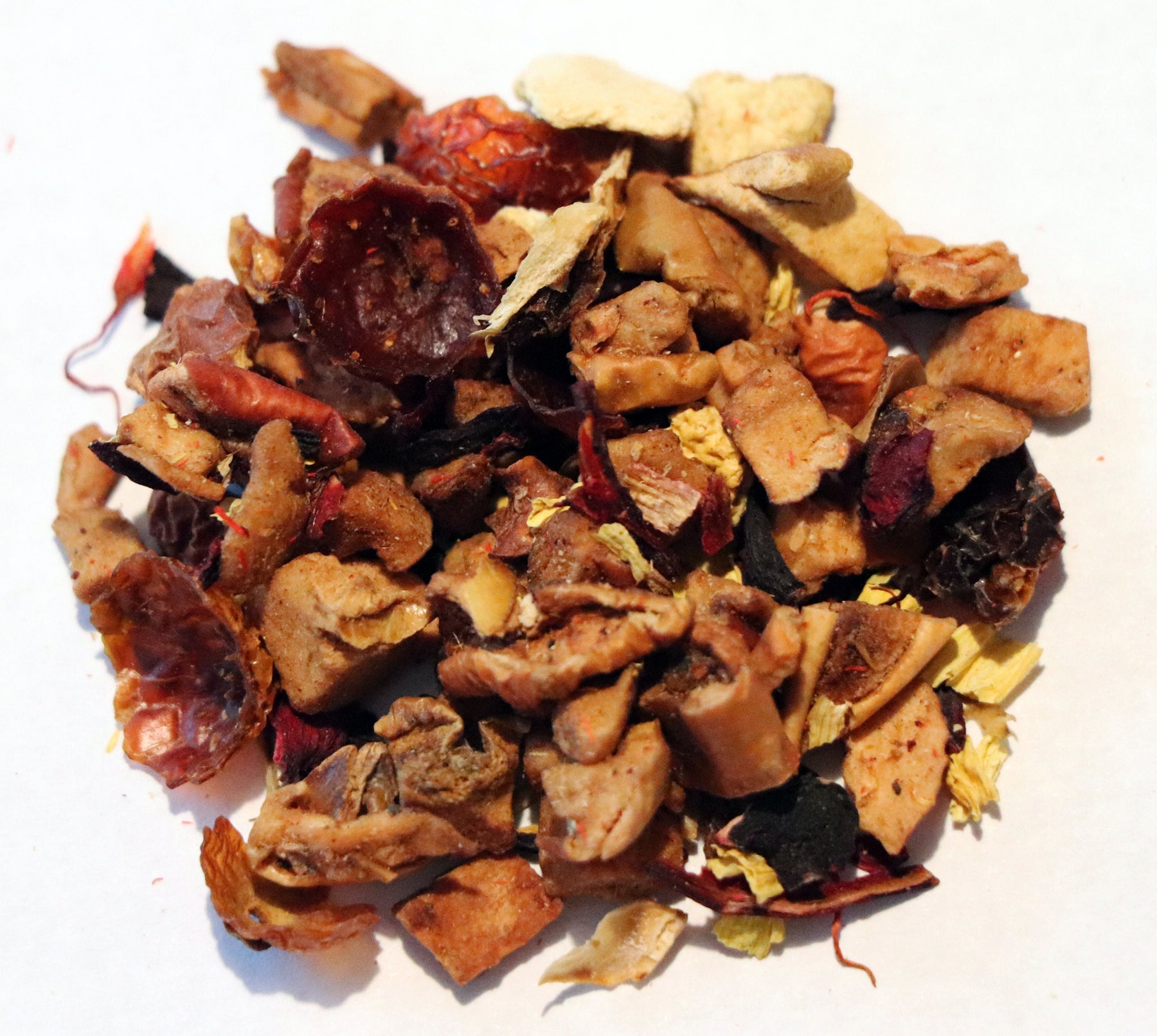 INGREDIENTS: Apple Pieces, Hibiscus Petals, Rosehip Pieces, Orange Pieces, Sunflower Petals, Safflower Petals, Natural flavors (organic compliant).