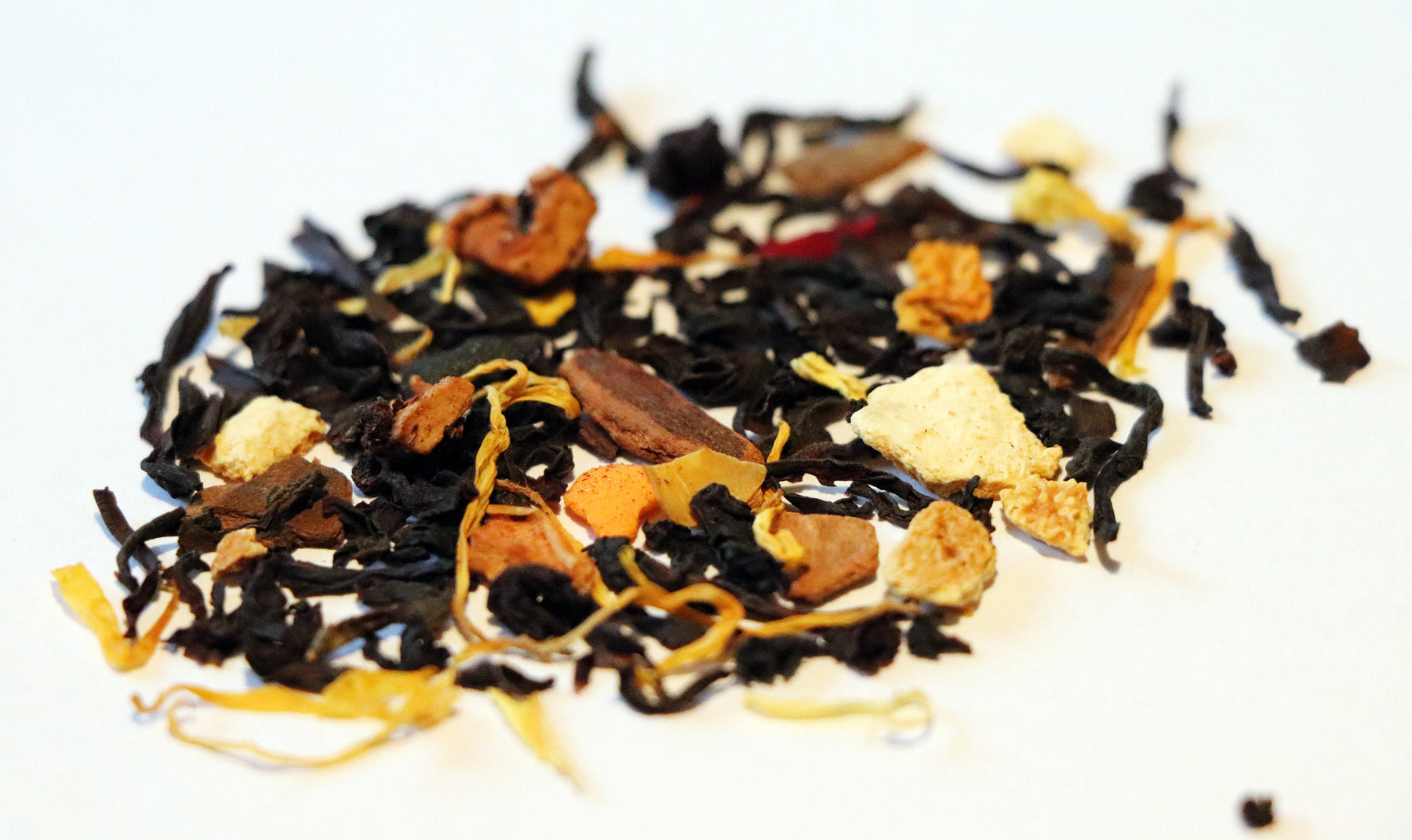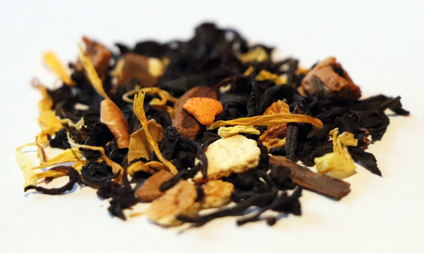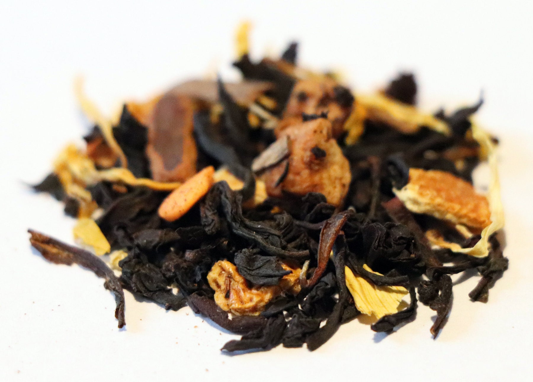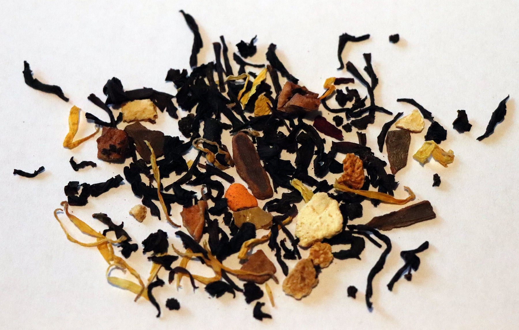 INGREDIENTS: Black tea, Rooibos, Candy*, Apple + Orange + Rosehip + Almond + Vanilla Pieces, Hibiscus + Calendula + Sunflower Petals, Cinnamon, Natural Flavors (organic compliant) (*Candy: Sugar, Corn starch, Vegetable oil, Rice Flour, Soy Lecithin, Dextrin, Confectioner glaze, Arabic + Cellulose gum, Carnauba wax, Blue1, Carrageenan, Yellow 5 + 6, Red 40 + 3 dye)