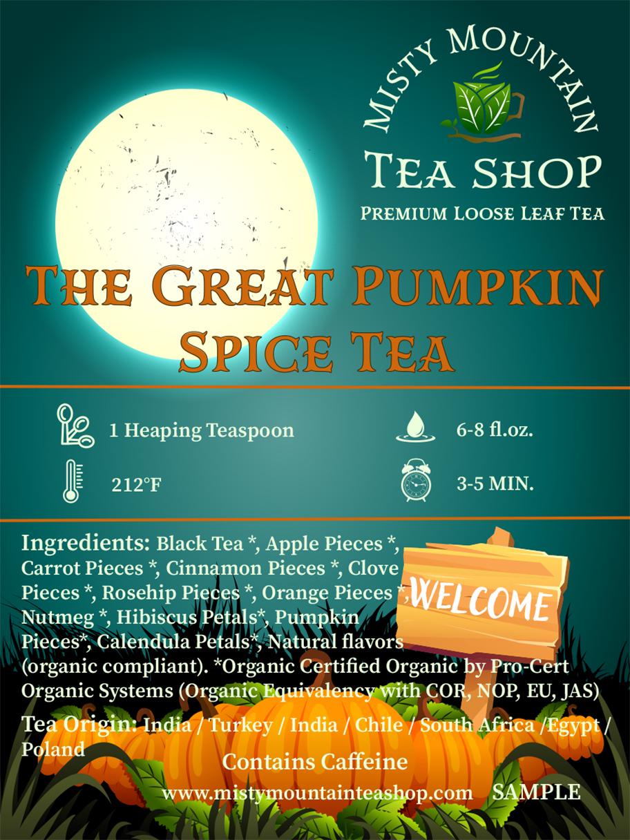 The Great Pumpkin Spice Tea has tasty notes of pumpkin blended of sweet autumn spices with layers of gooey caramel.