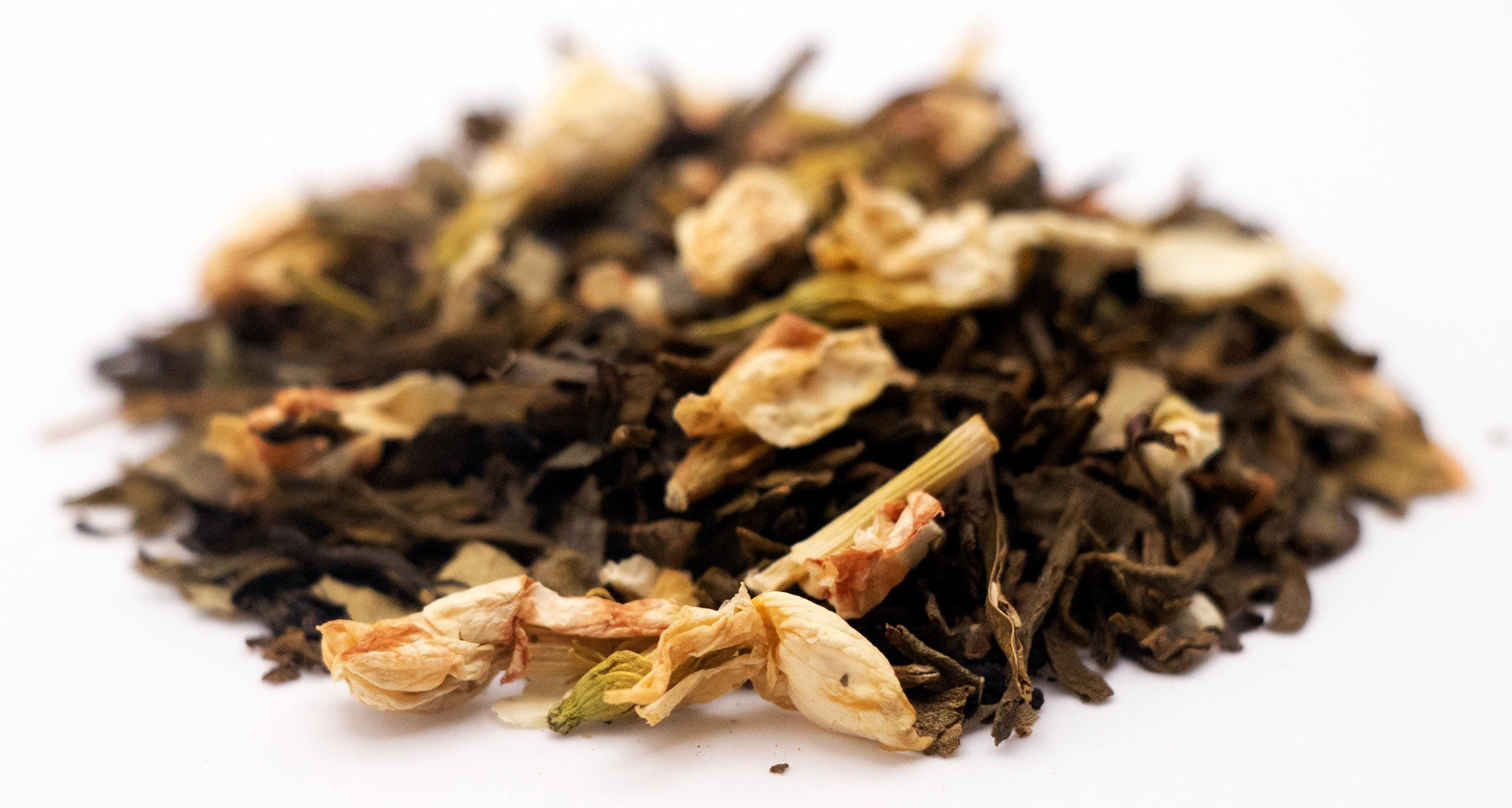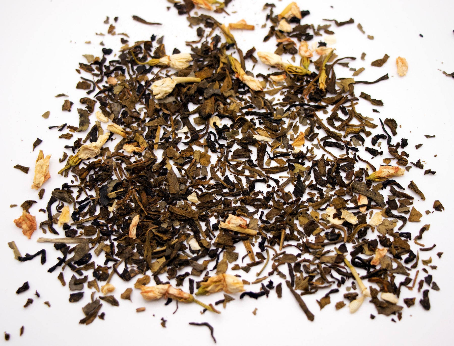 Delicate Jasmine flowers deliciously blended with Jasmine flavored green tea. Caffeine free, so feel free to indulge a cup of Decaf Jasmine Flower Green Tea any time of day.