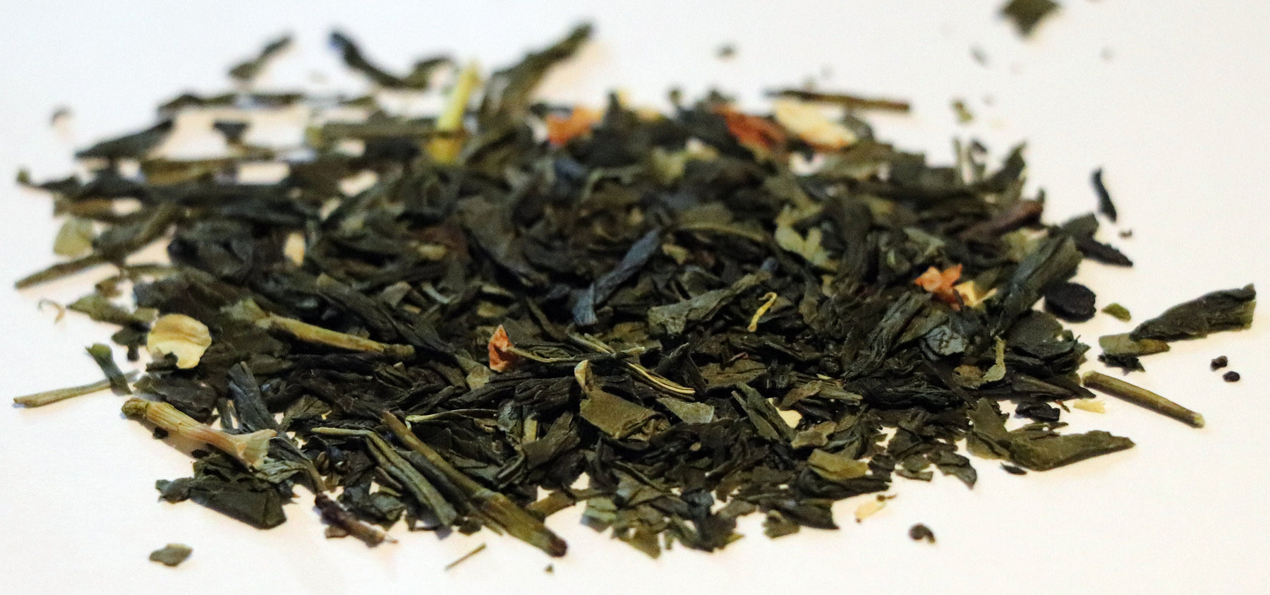 Jasmine Peach Green Tea - Lush peach notes with sweet overtones. Superb quality green tea dotted with jasmine petals comes alive with one of the world's favorite flavors.
