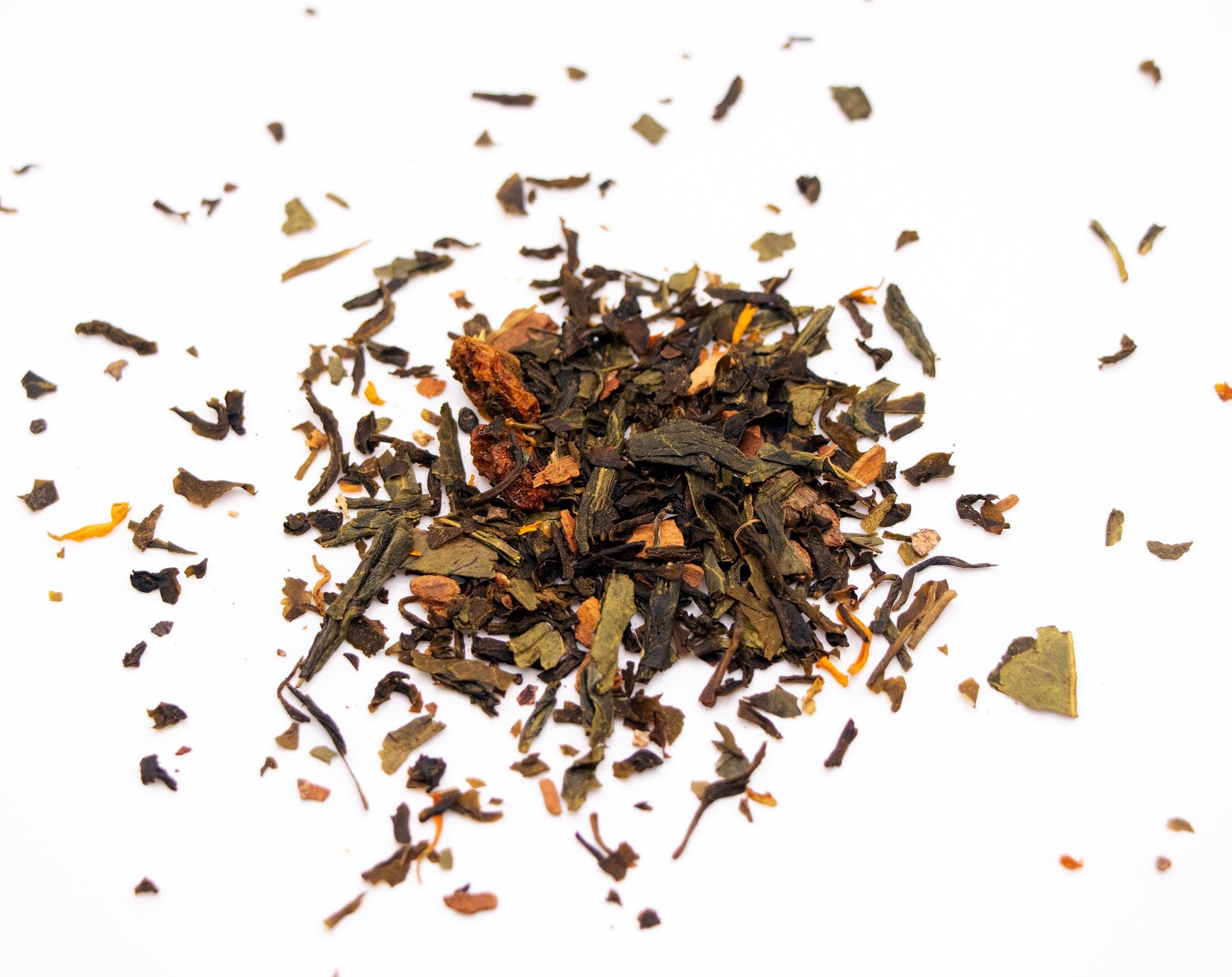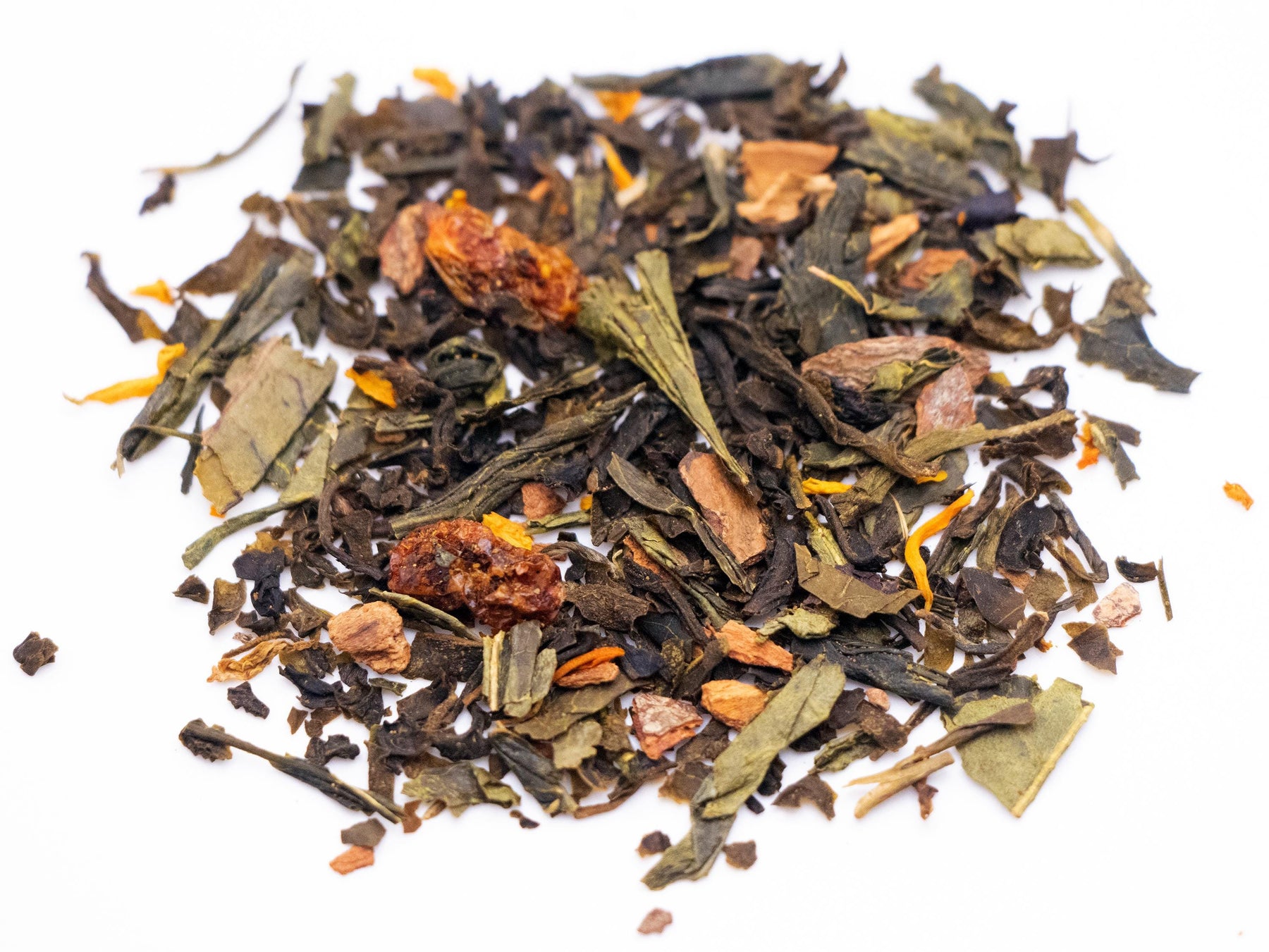 Ingredients: Green Tea Leaves, Cinnamon Pieces, Nutmeg Pieces, Clove Pieces, Sea Buckthorn Pieces, Pumpkin Seed Pieces, Marigold Petals, Vanilla Bean Pieces, Natural Vanilla Flavoring