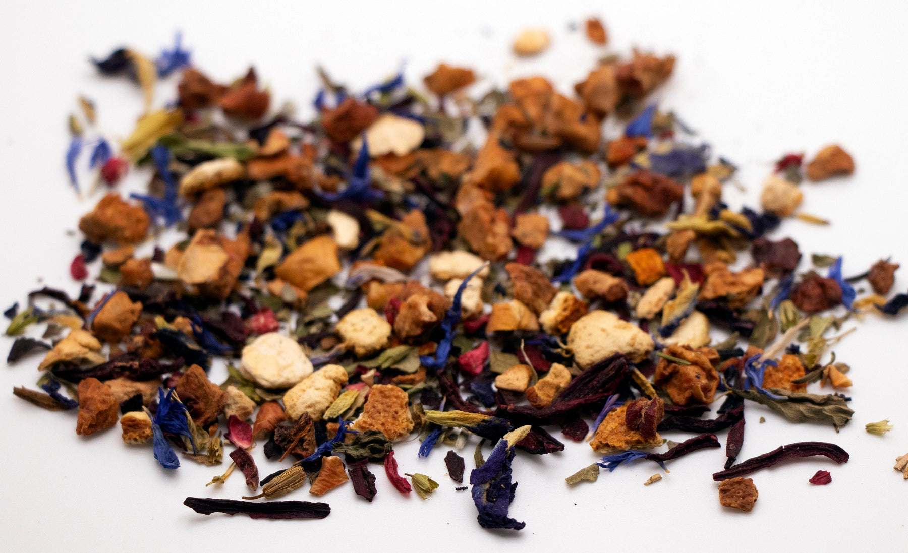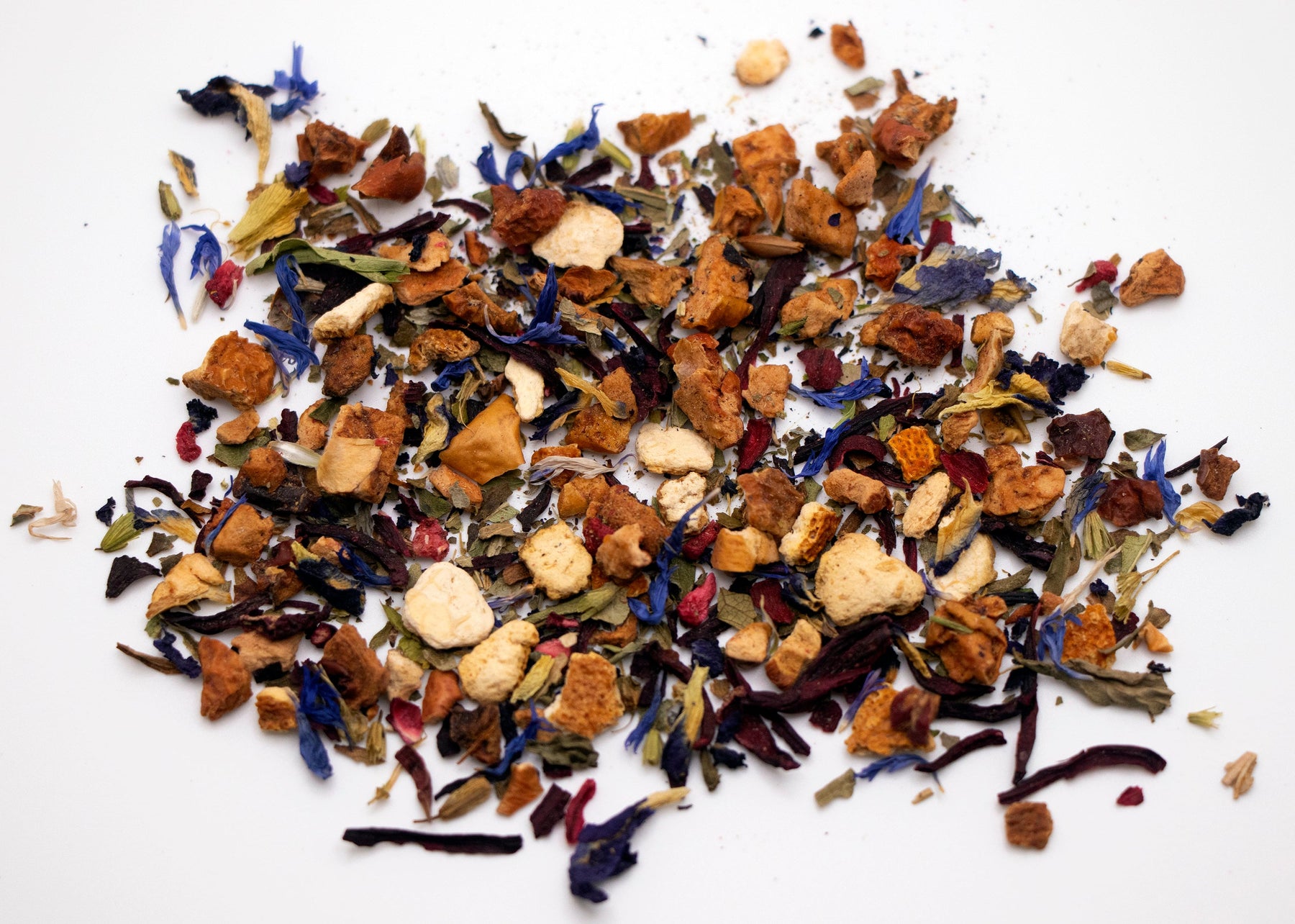 Ingredients: Apple Pieces, Hibiscus Petals, Strawberry Leaves, Orange Pieces, Butterfly Blue Pea Flower Petals, Stevia Leaves, Raspberry Pieces, Cornflower Petals, Organic Natural Flavors