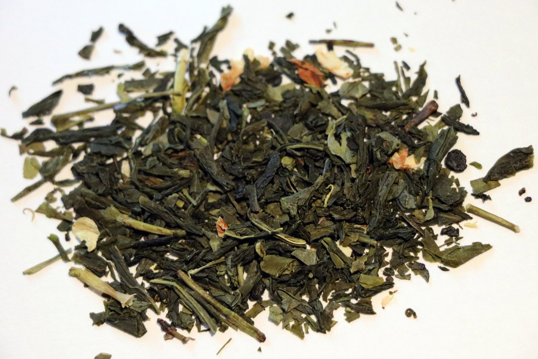 Jasmine Peach Green Tea - Lush peach notes with sweet overtones. Superb quality green tea dotted with jasmine petals comes alive with one of the world's favorite flavors.