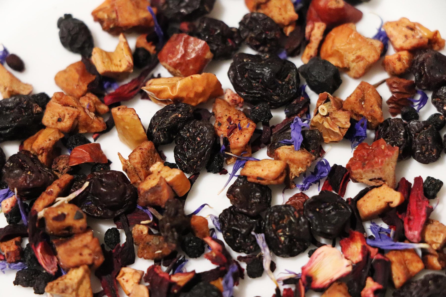 Ingredients: Hibiscus Petals, Apple Pieces, Elderberry Pieces, Currant Pieces, European Blueberries, Cornflower Petals, American Blueberries, Natural Blueberry Flavor