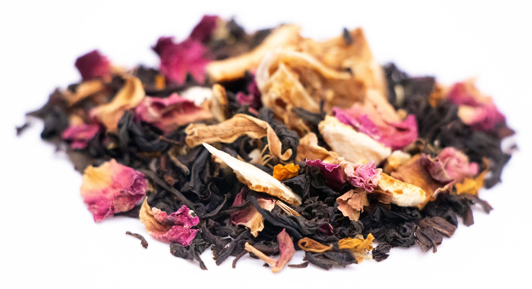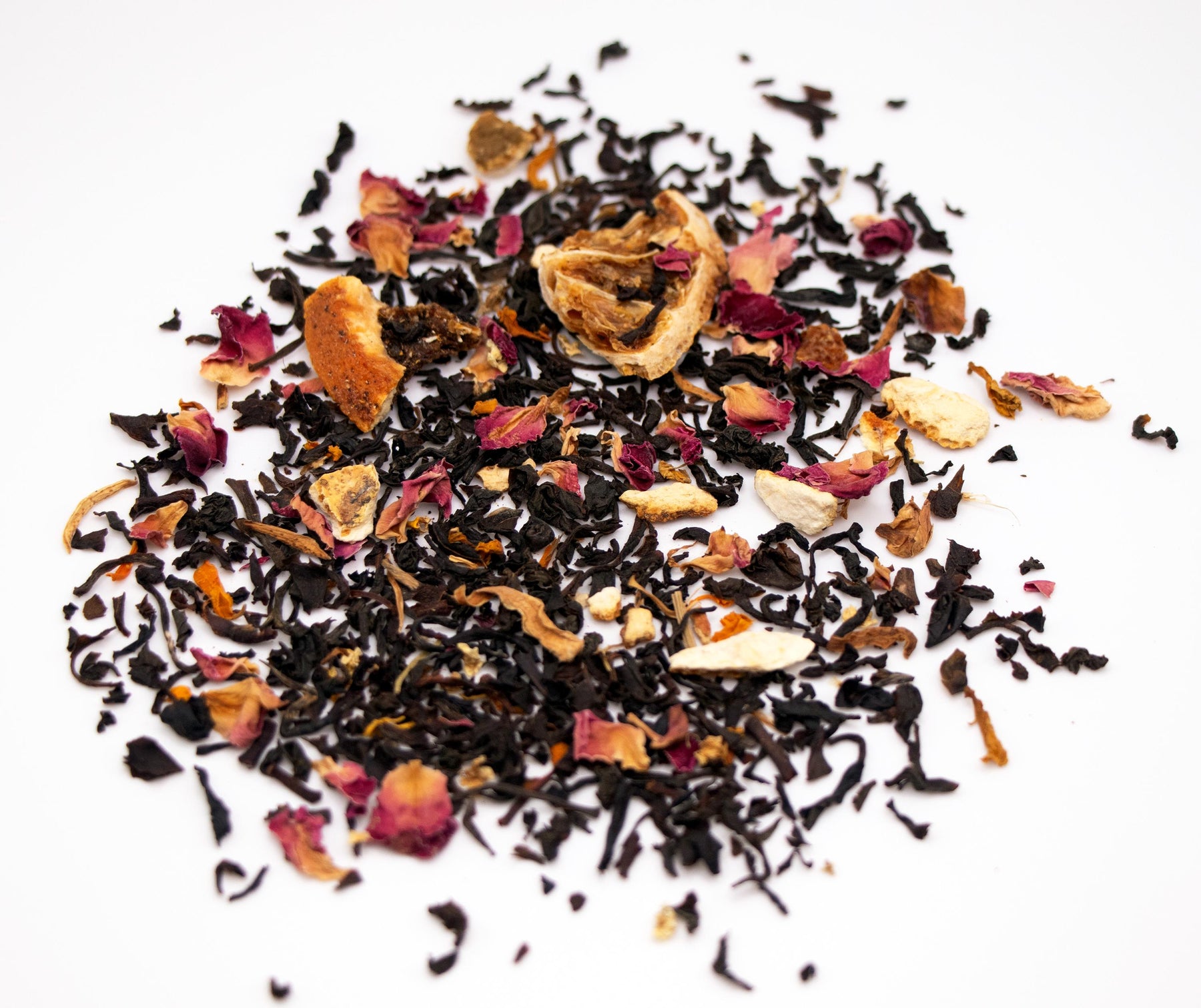 Ingredients: Black Tea, Orange Pieces, Rose Petals, Marigold Petals, Elder Flowers, Orange Blossoms, Natural Orange and Vanilla Flavor