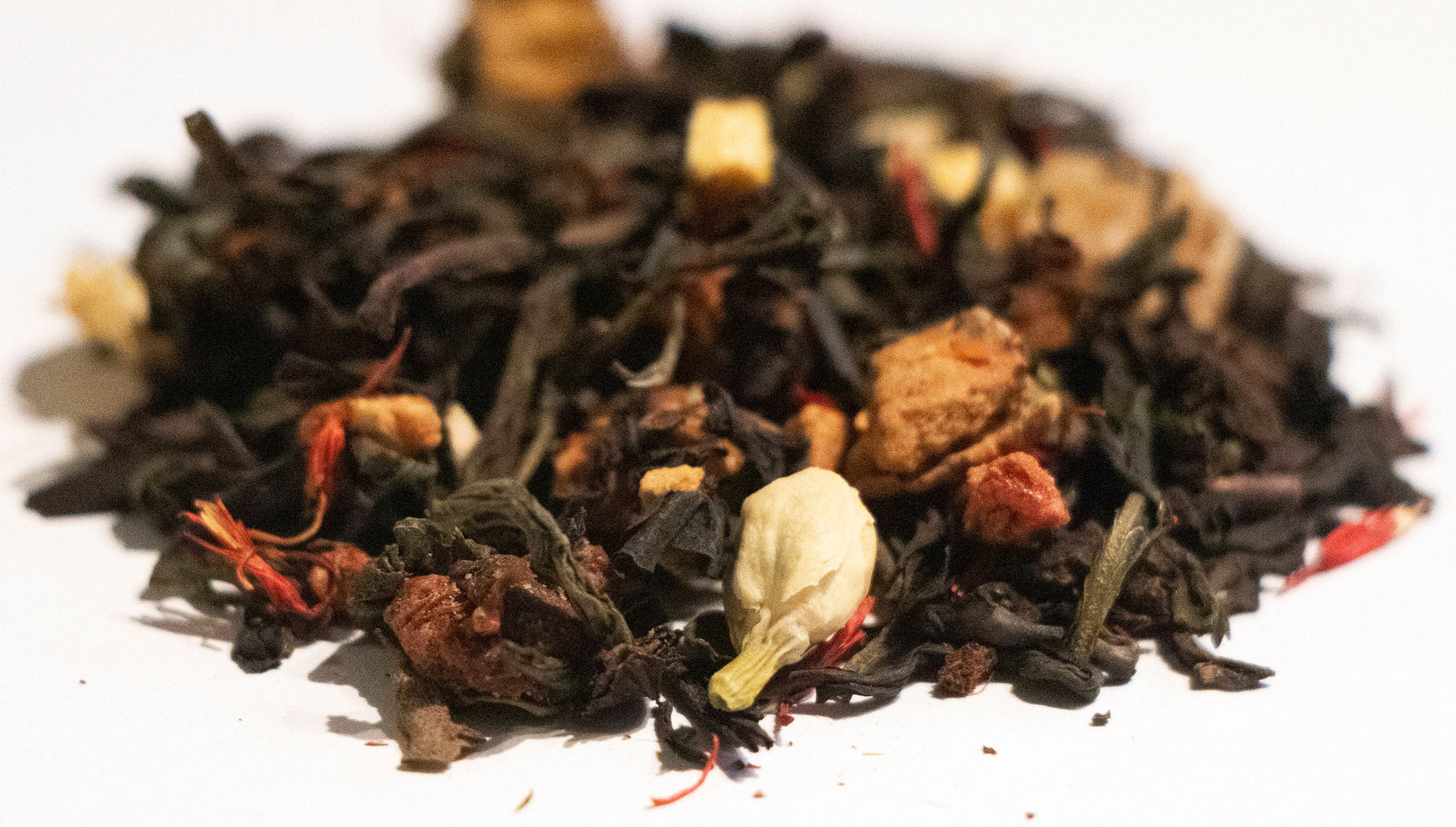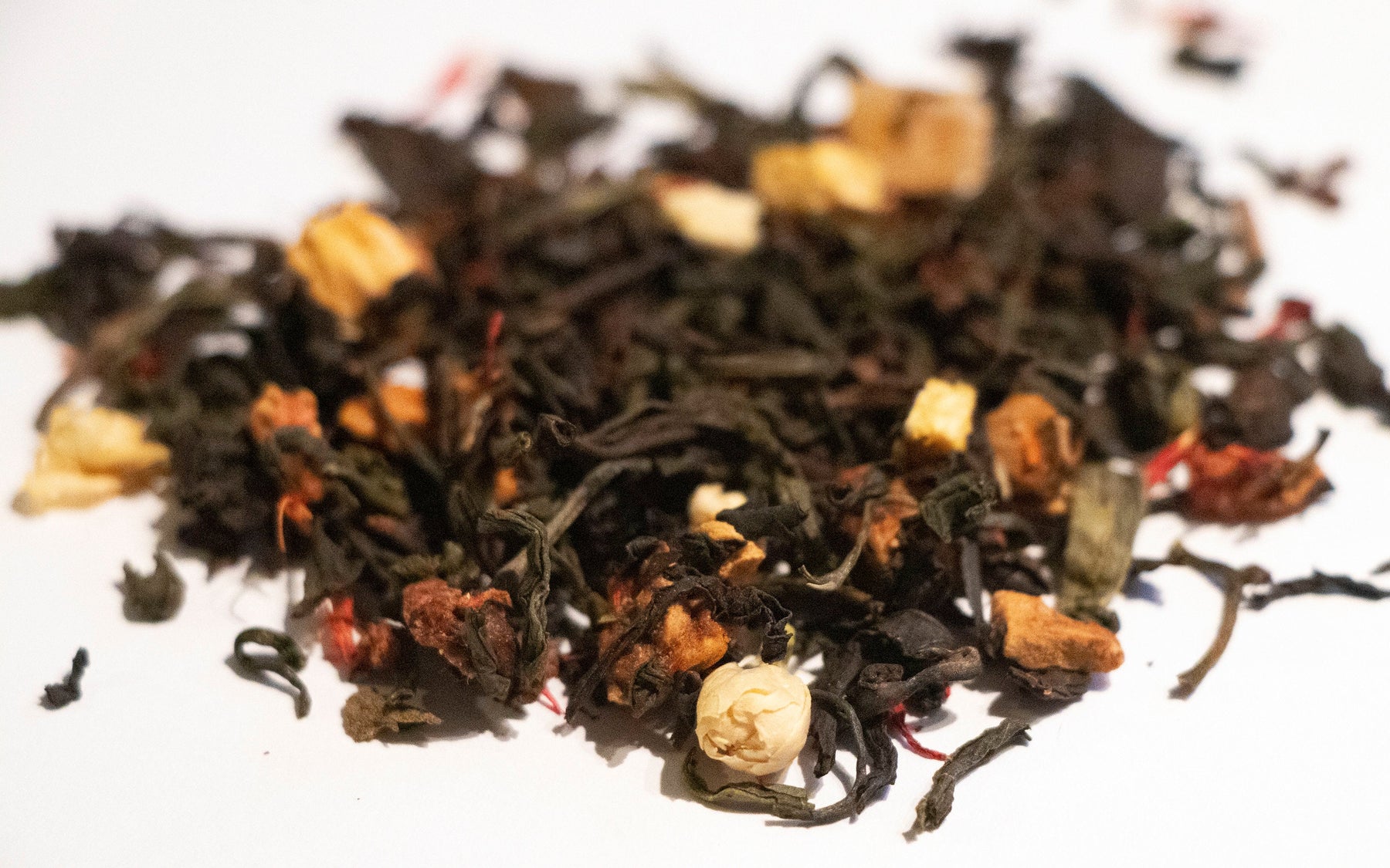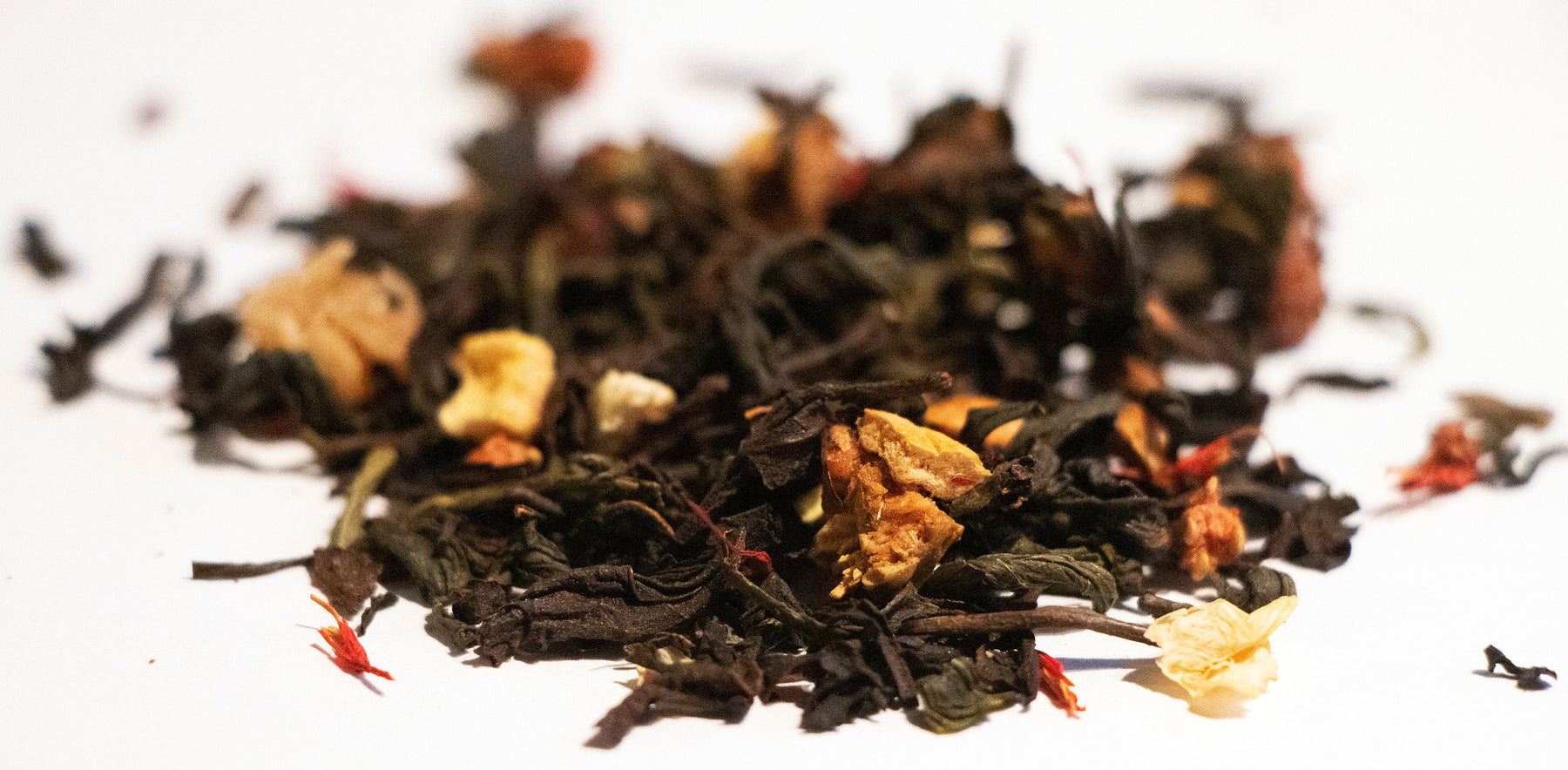 Ingredients: Oolong Tea, Green Tea, Mango Pieces, Apple Pieces, Strawberry Pieces, Peach Pieces, Jasmine Petals, Safflower Petals