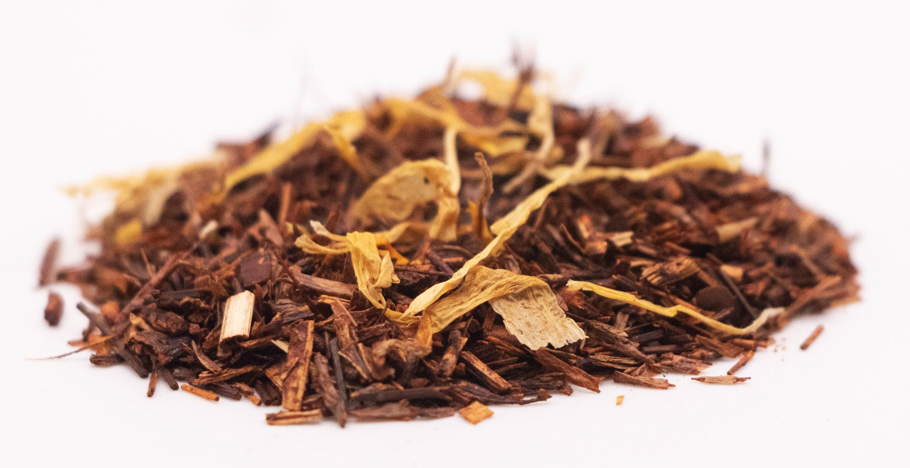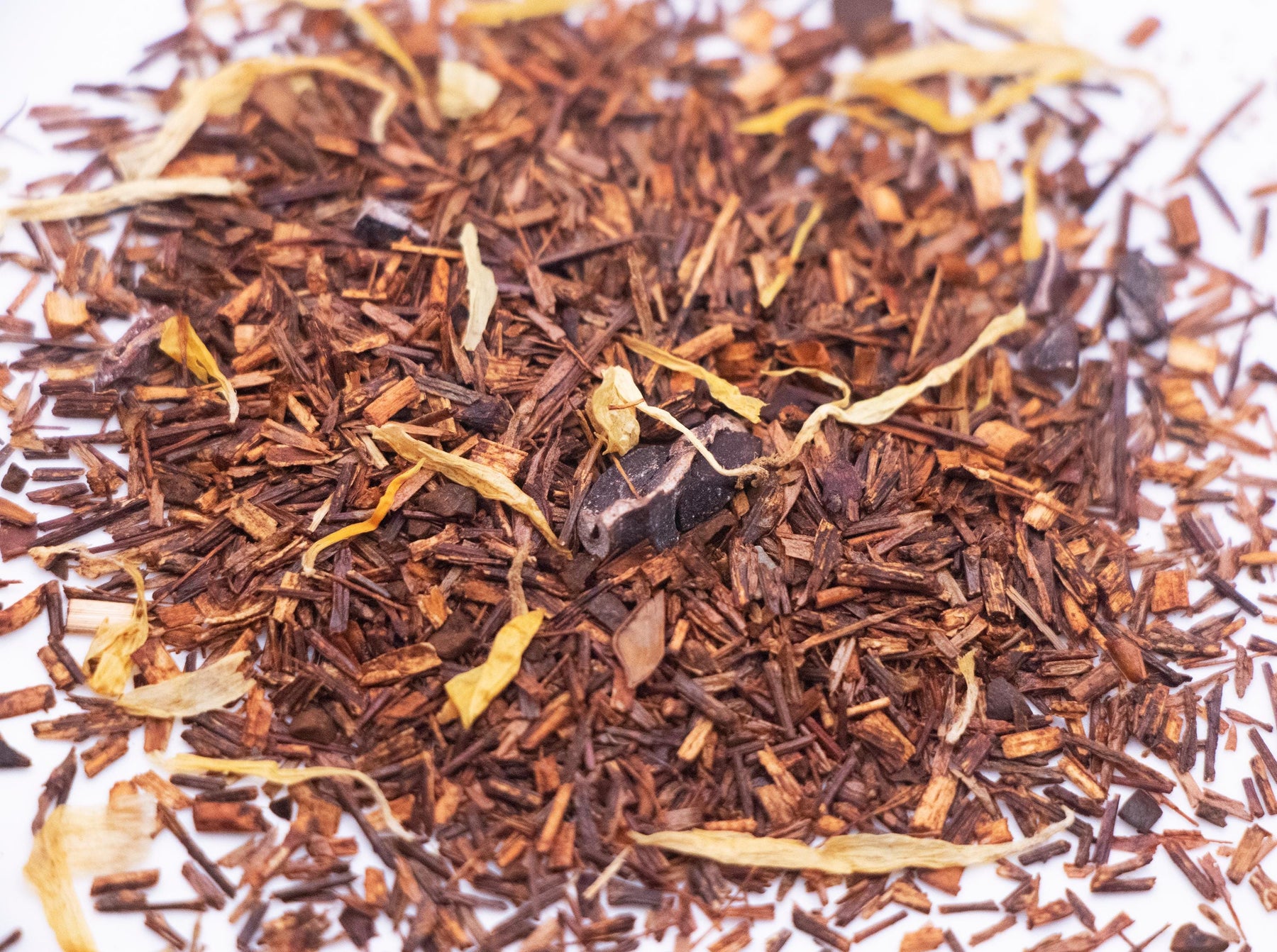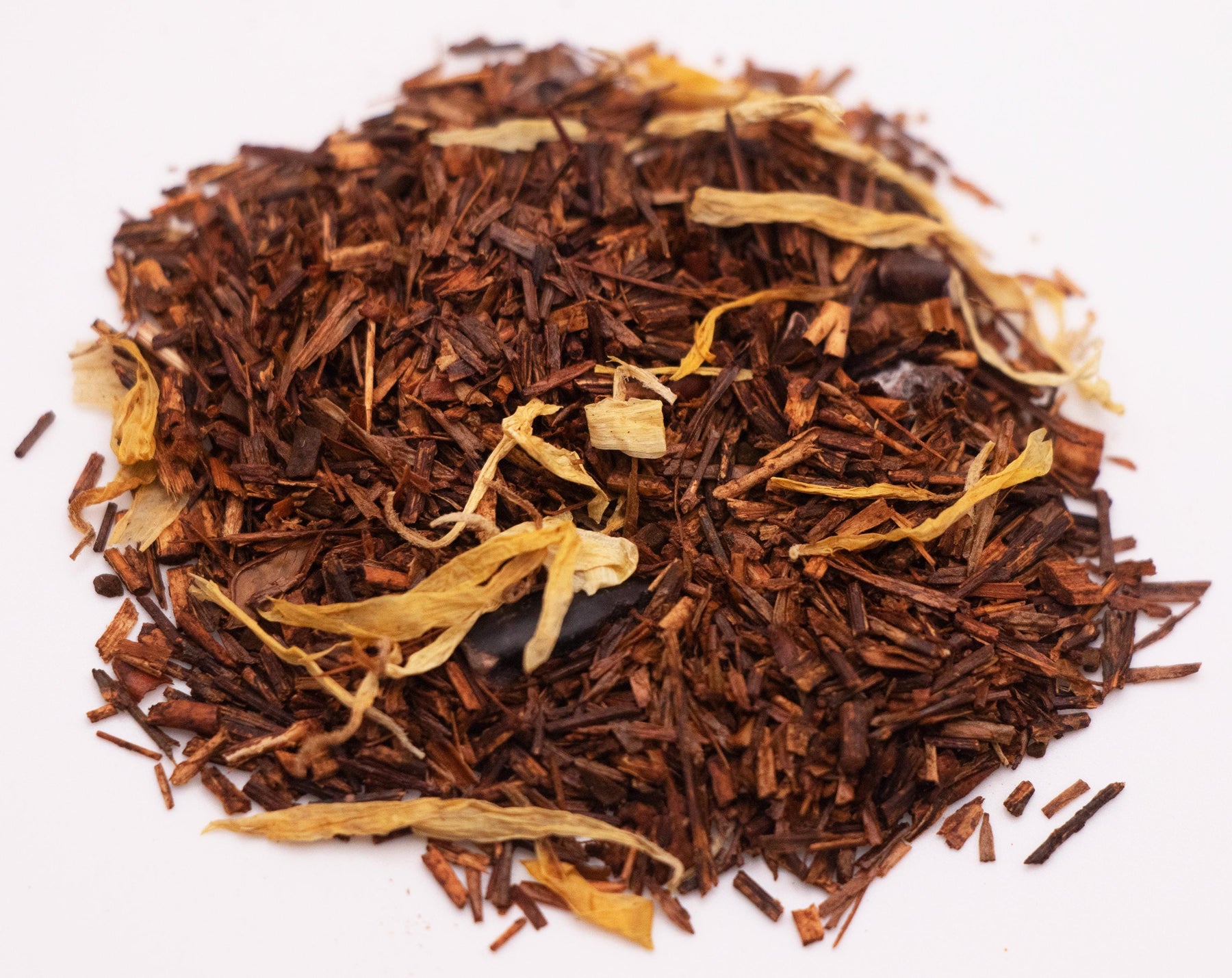 Ingredients: Rooibos Tea, Cocoa Bean Pieces, Decaf Coffee Bean Pieces, Calendula Petals, Natural Flavors