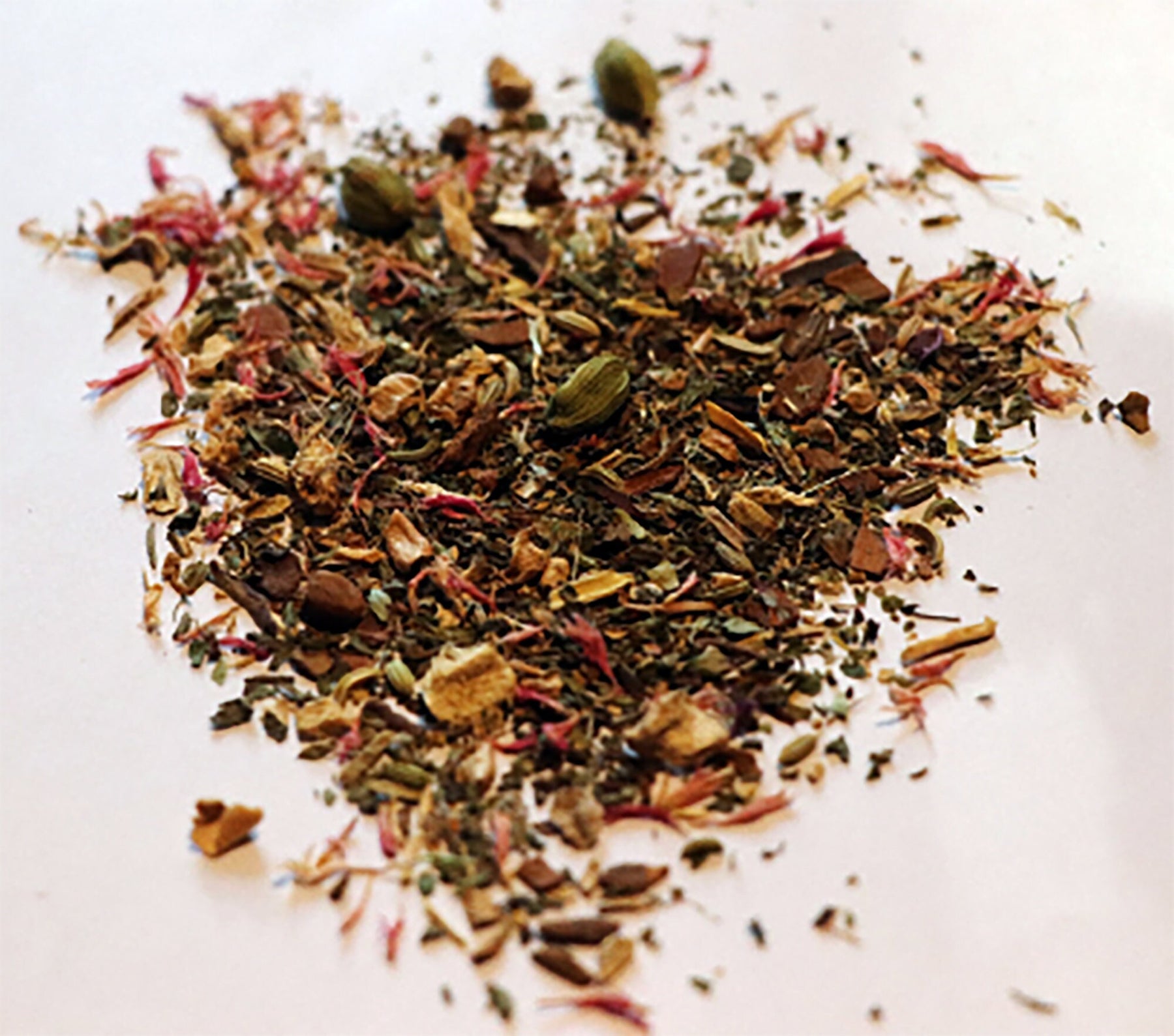 INGREDIENTS: Ginger, Peppermint, Cinnamon, Cardamom, Lemon balm, Licorice, Fennel, Burdock root, Cornflower petals.