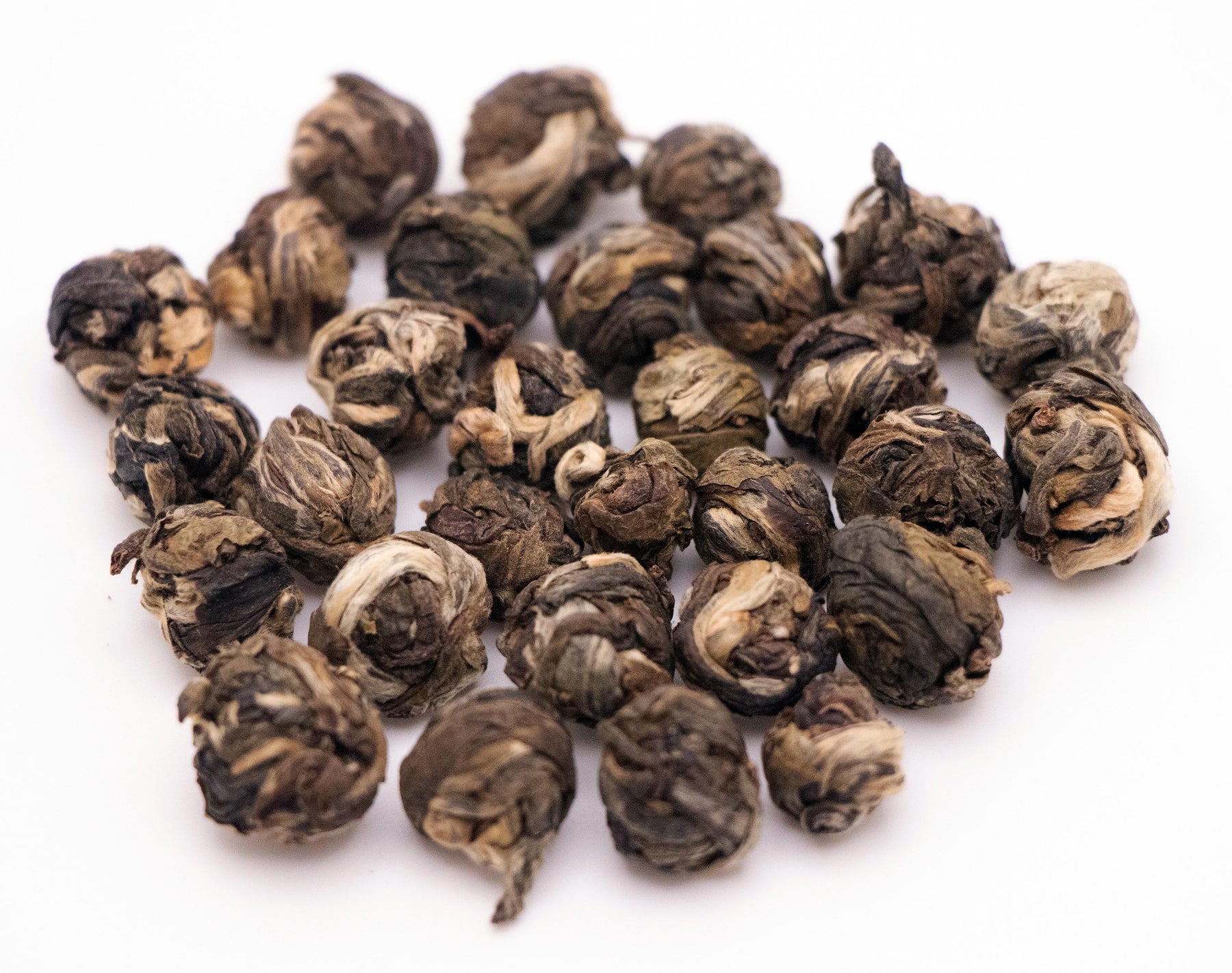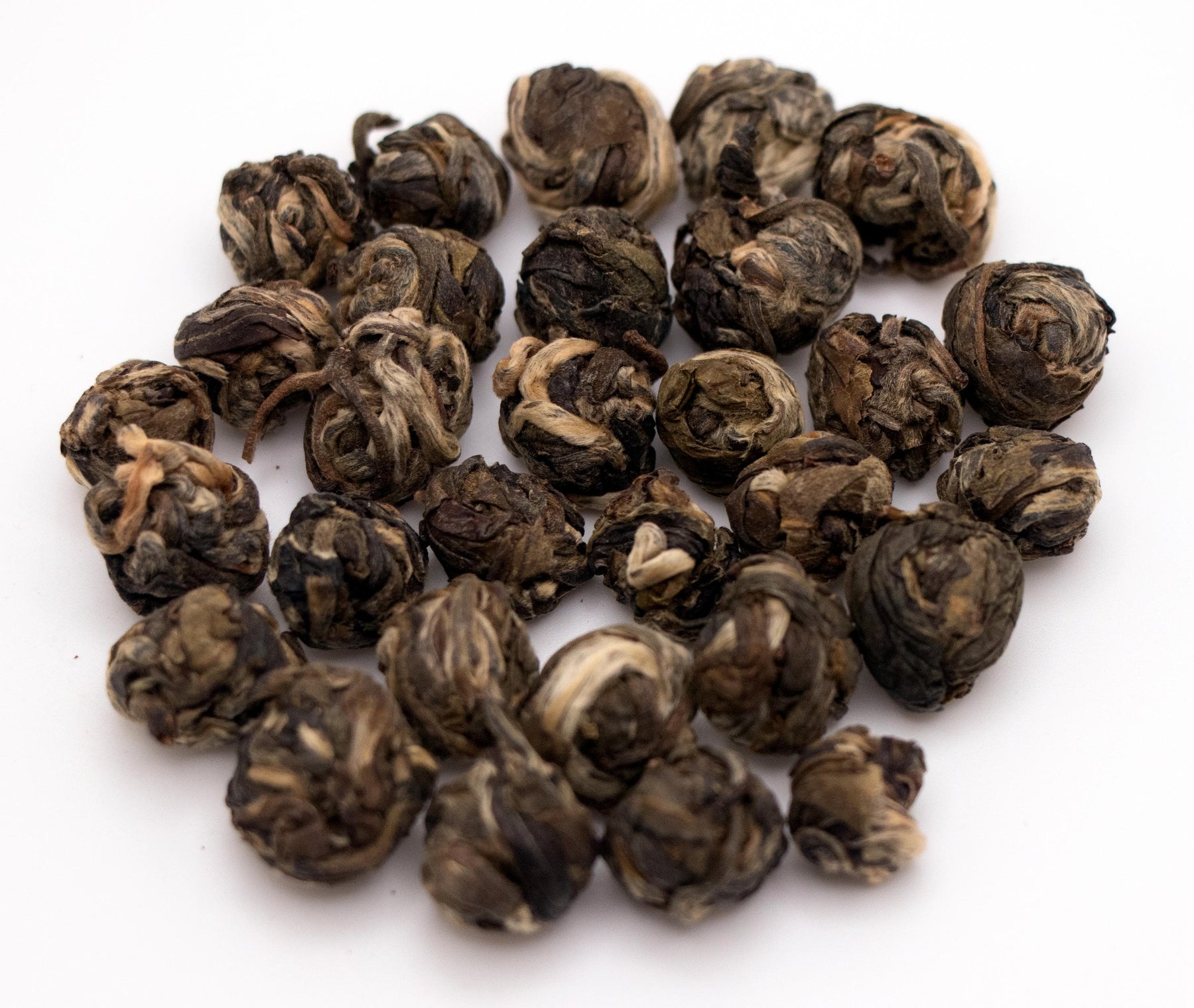 This exquisite tea features fine green tea leaves tipped with silver buds, hand-rolled into delicate pearls and infused with the scent of blooming jasmine flowers. As they unfurl in hot water, each pearl releases a luxurious aroma and a smooth, soothing flavor that lingers with floral grace.