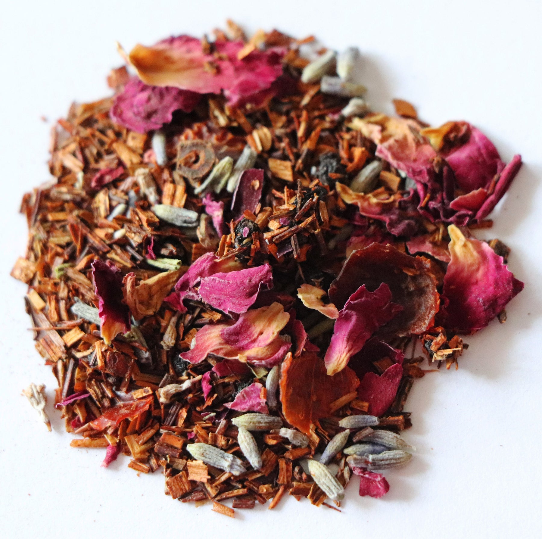 Lavender Berry Rooibos Tea - Fruity with sweet floral notes create synergy with the burgundy rooibos. The lavender provides a sweet floral finish.