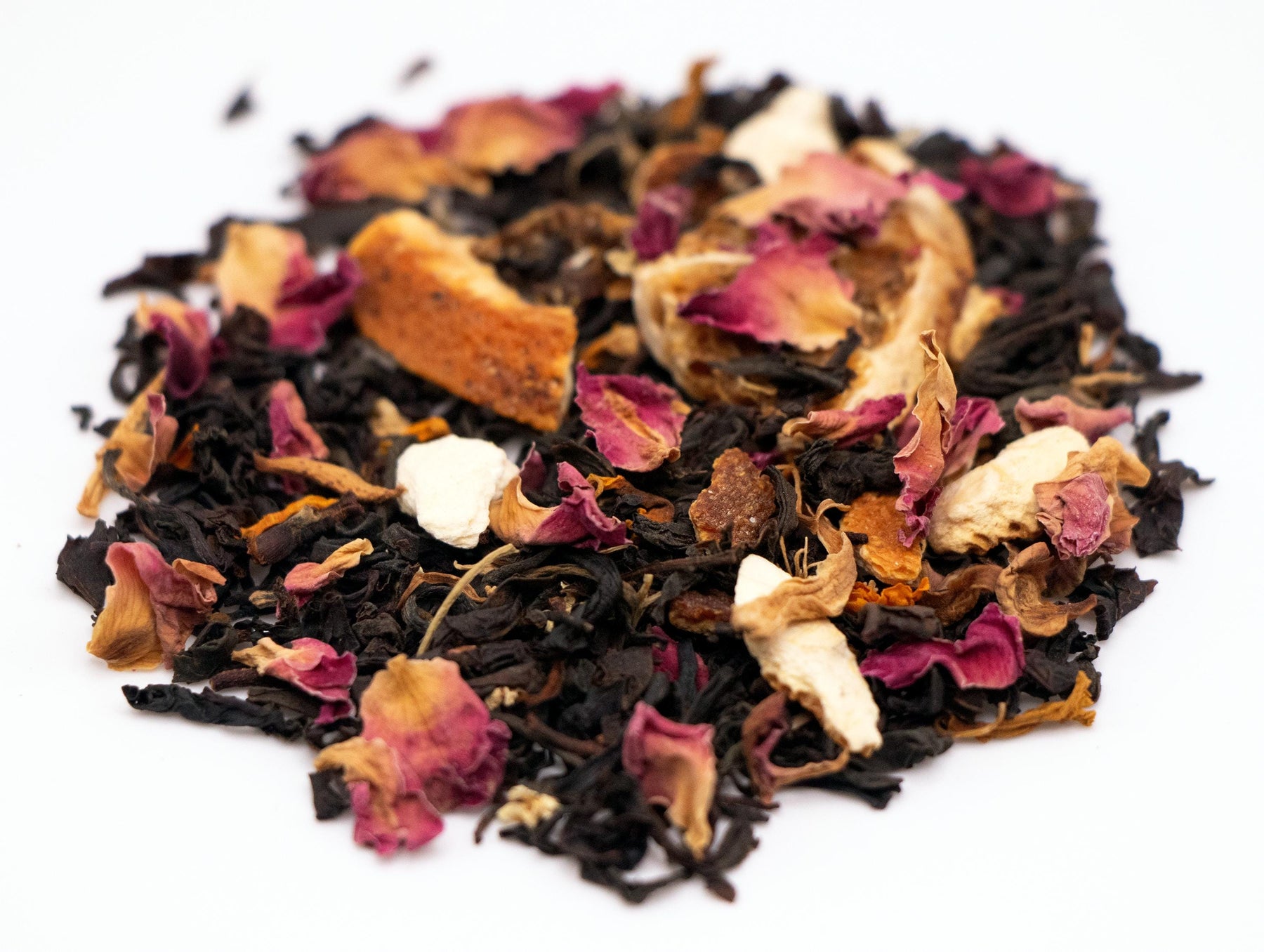 Ingredients: Black Tea, Orange Pieces, Rose Petals, Marigold Petals, Elder Flowers, Orange Blossoms, Natural Orange and Vanilla Flavor