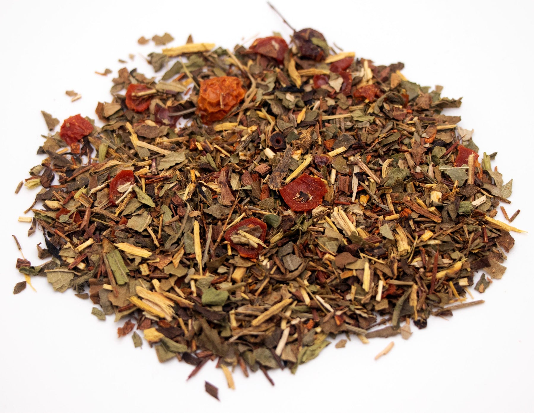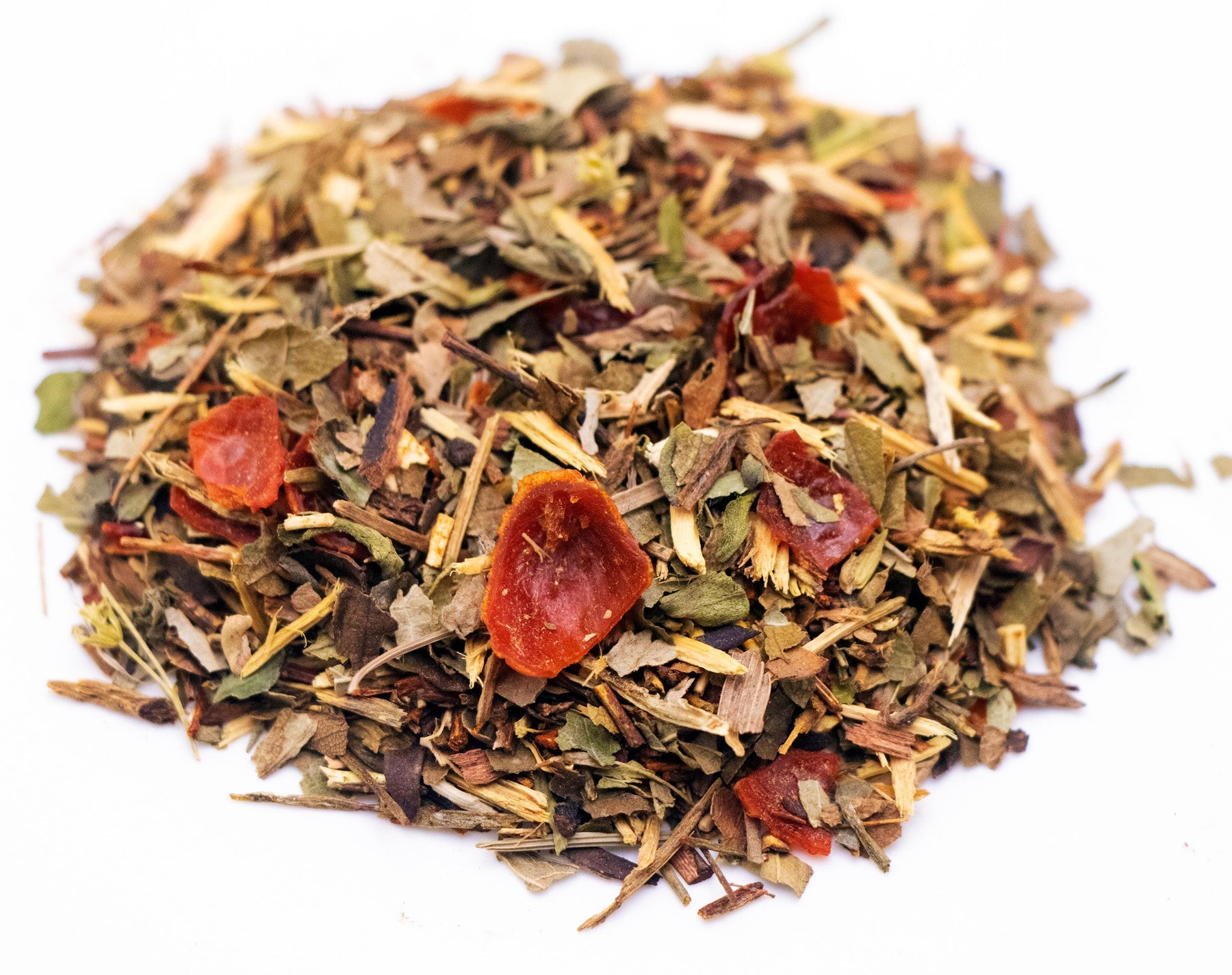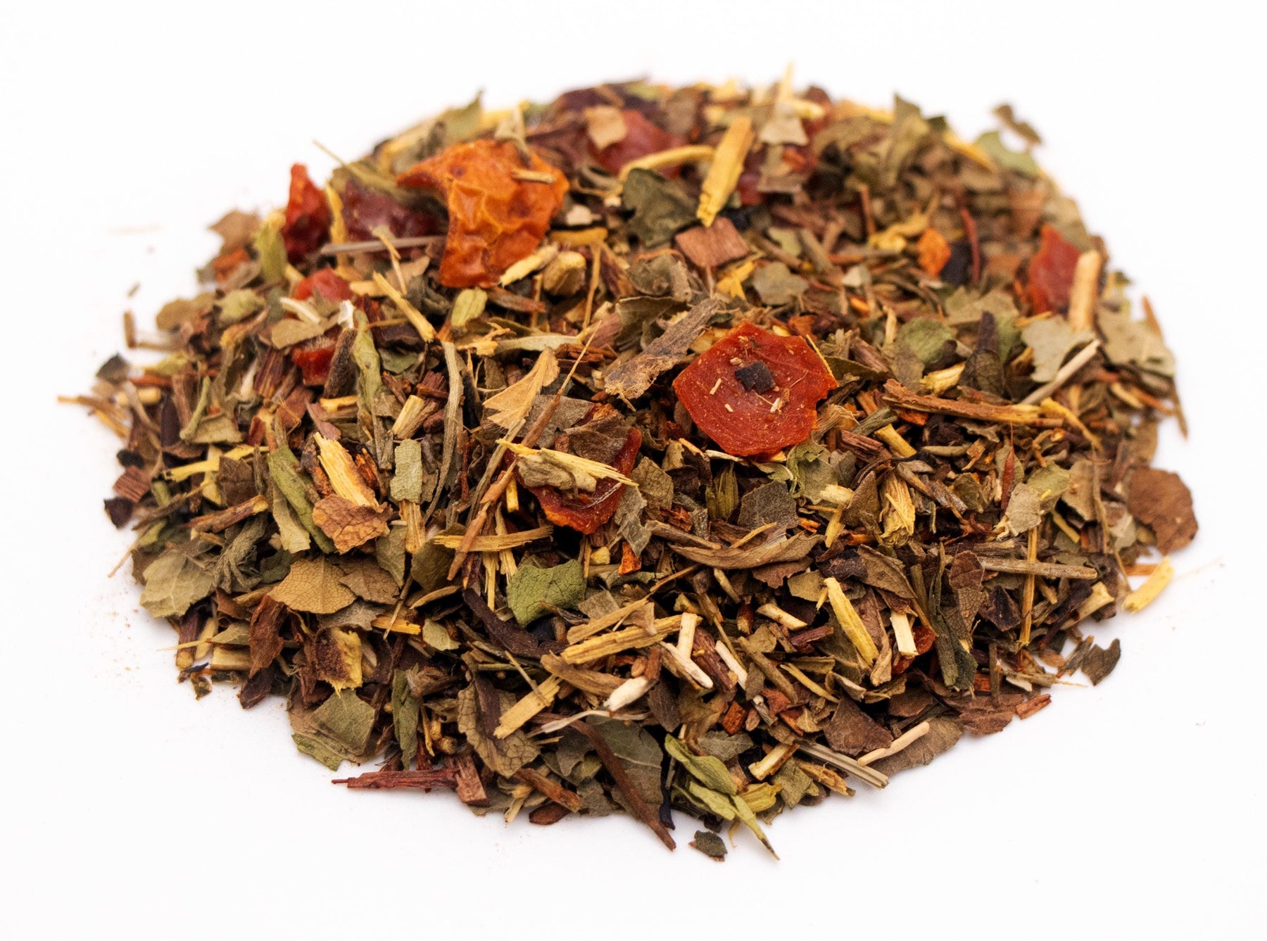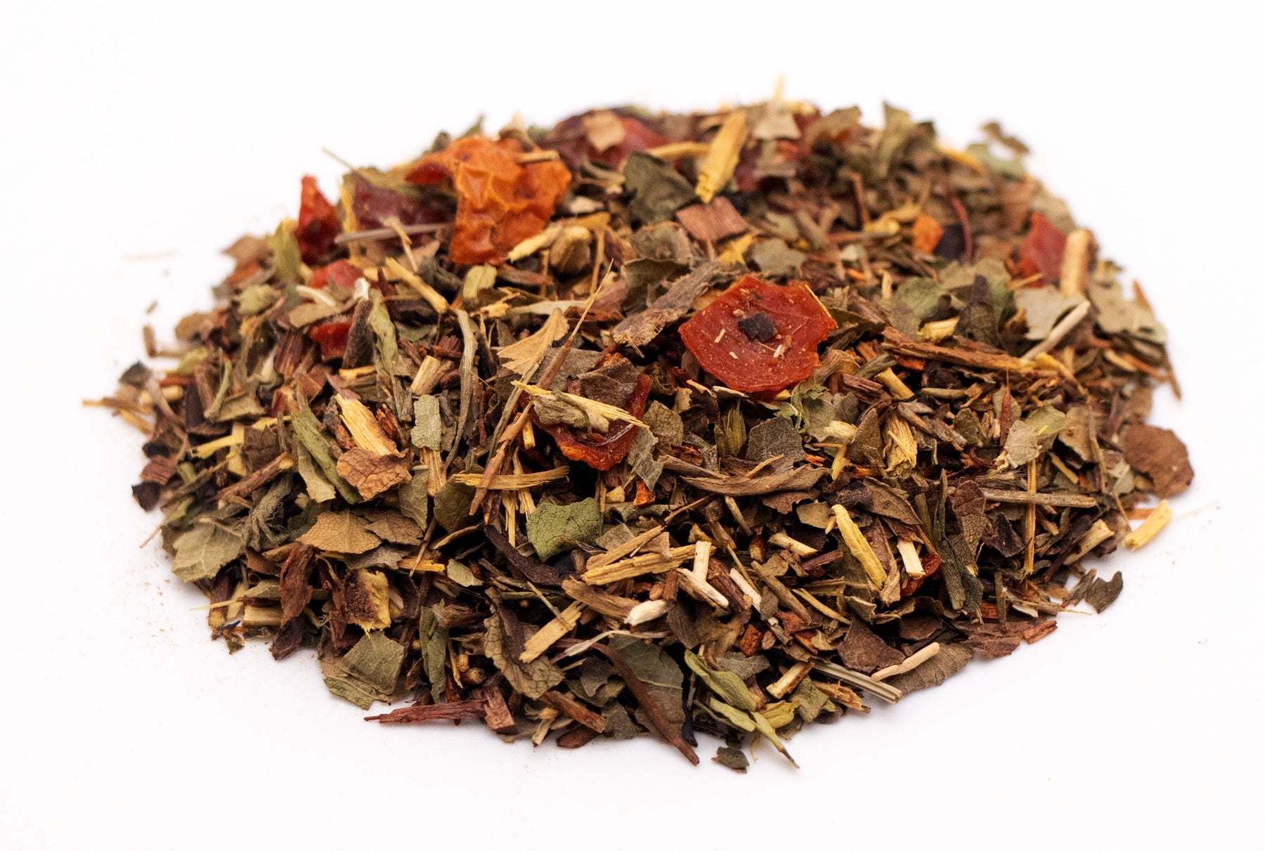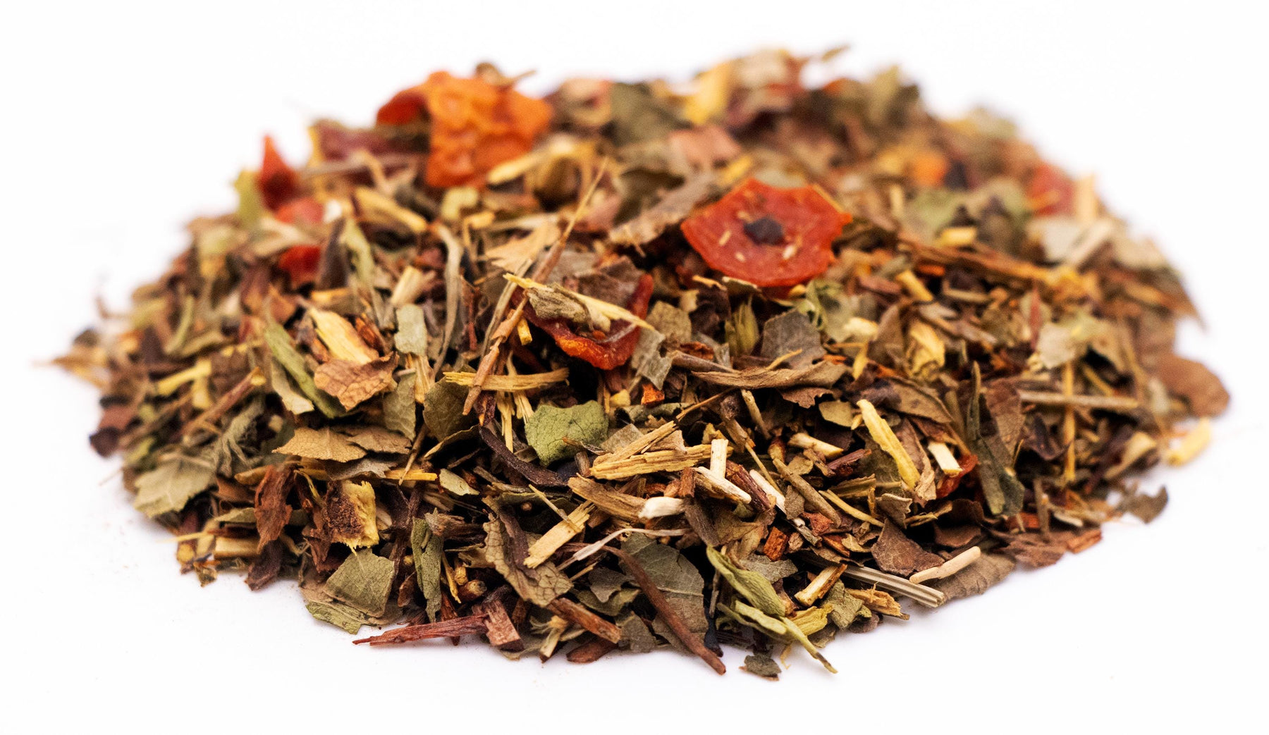 Ingredients: Red Rooibos, Green Rooibos, Licorice Root, Strawberry Leaves, Blackberry Leaves, Rosehip Pieces, Honeybush Tea, Sarsaparilla Leaves, Stevia Leaves, Natural Flavors