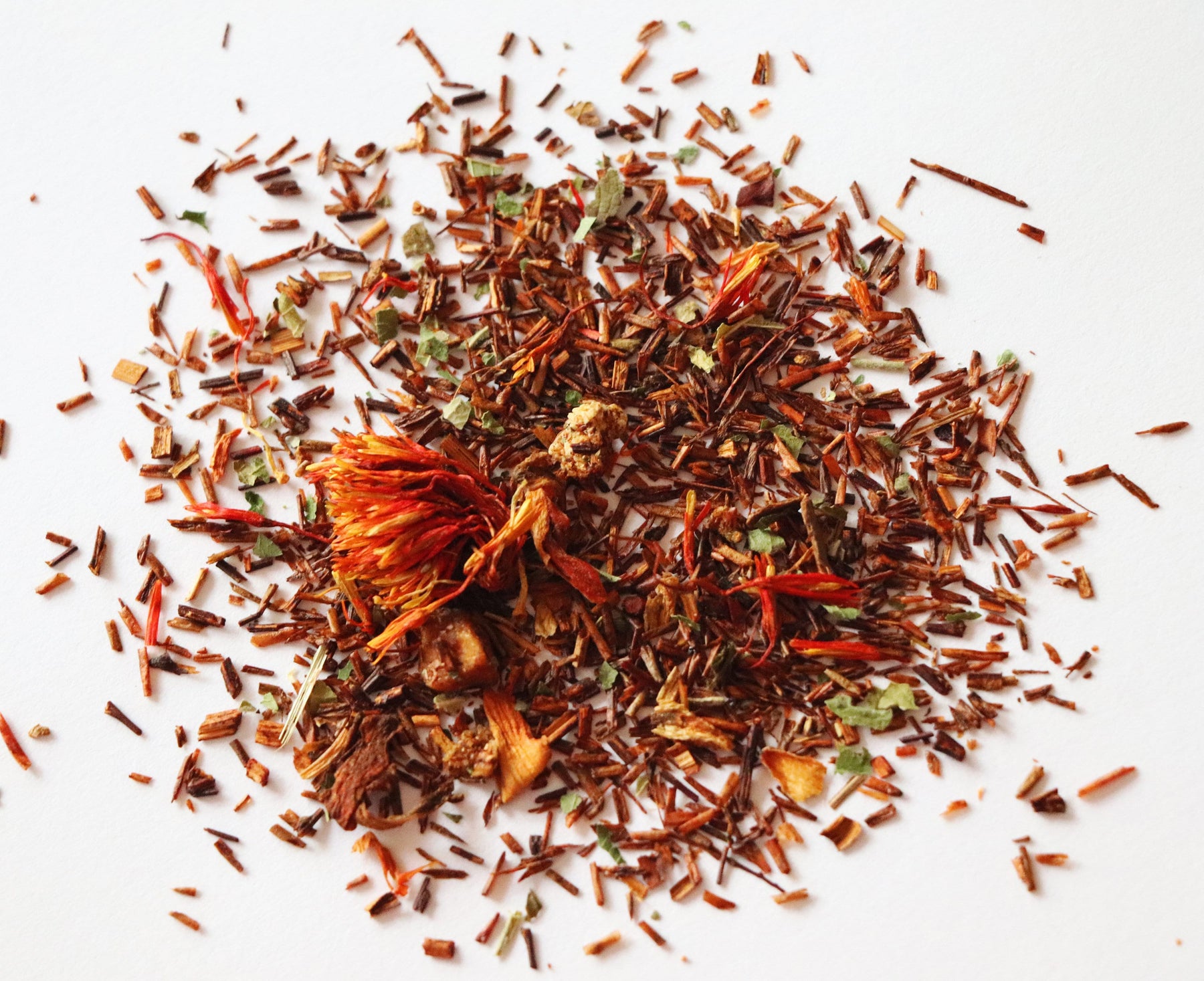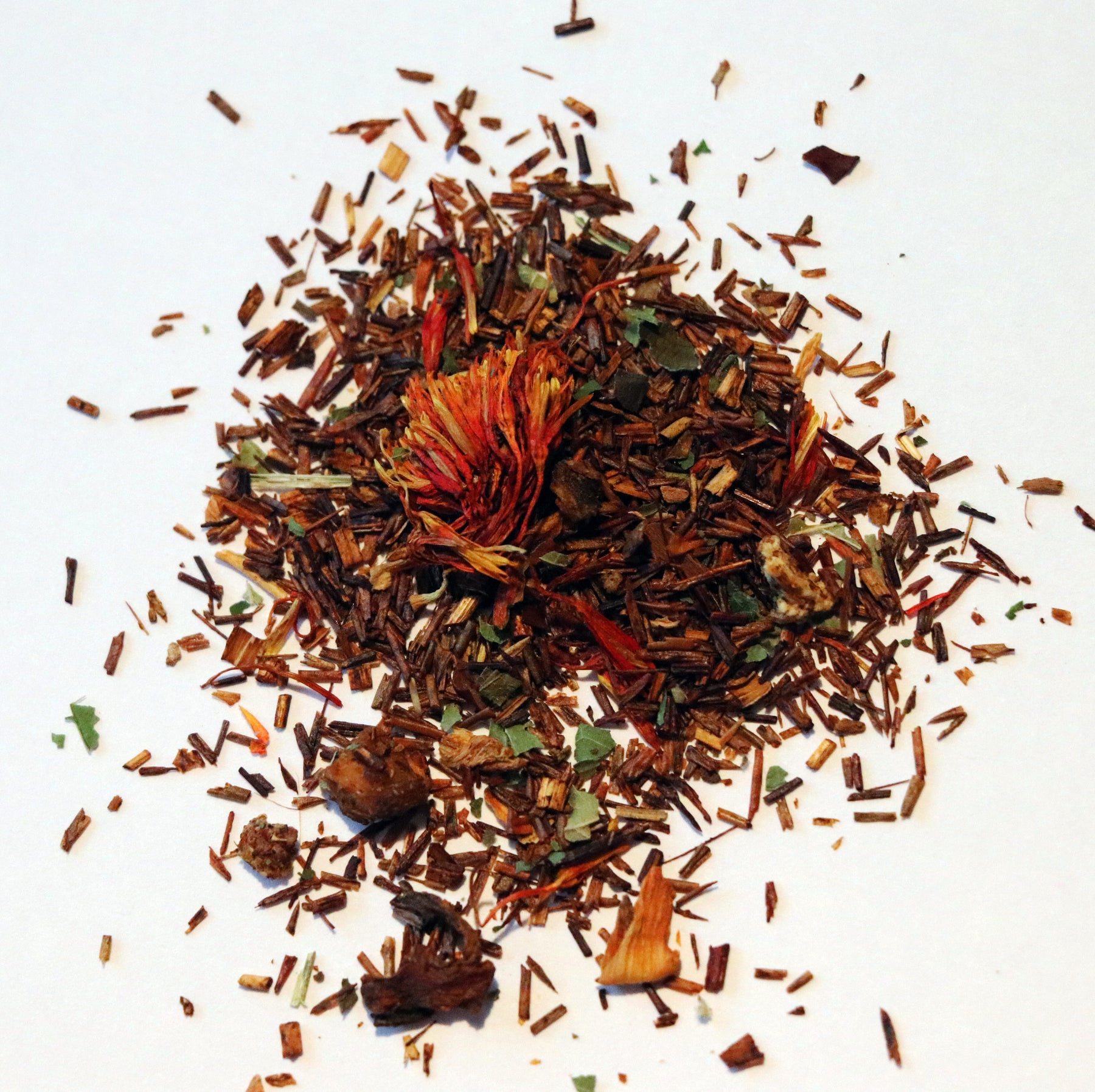 INGREDIENTS: Rooibos, Cinnamon, Apple Pieces, Lily Flower Petals, Blackberry Leaves, Safflower Petals, Pear Pieces, Natural Flavors (Organic Compliant).