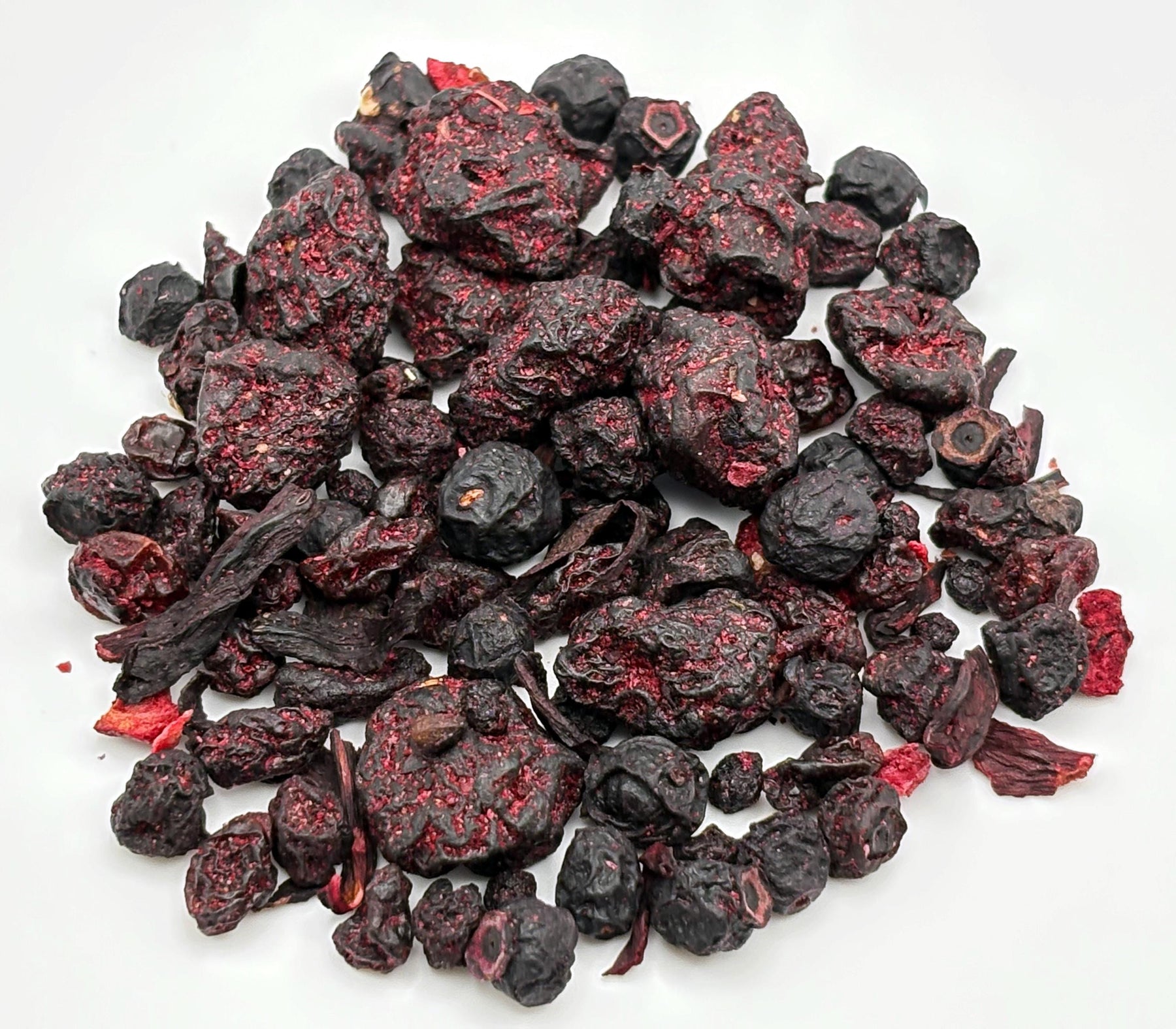 Ingredients: Elderberries, Currants, Blueberries, Cherries, Hibiscus Petals, Black Currants, Blackberries, Raspberries, Natural Fruit Flavors.